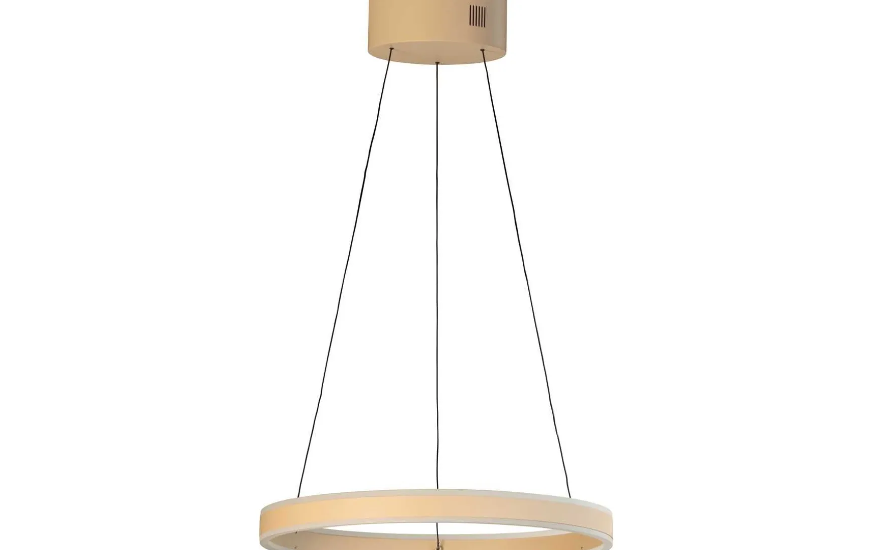 Die Pendelleuchte ist ringförmig mit 50 cm Durchmesser geformt und von 50 bis 180 cm mit einfach bedienbarem Kabellift höhenverstellbar.
