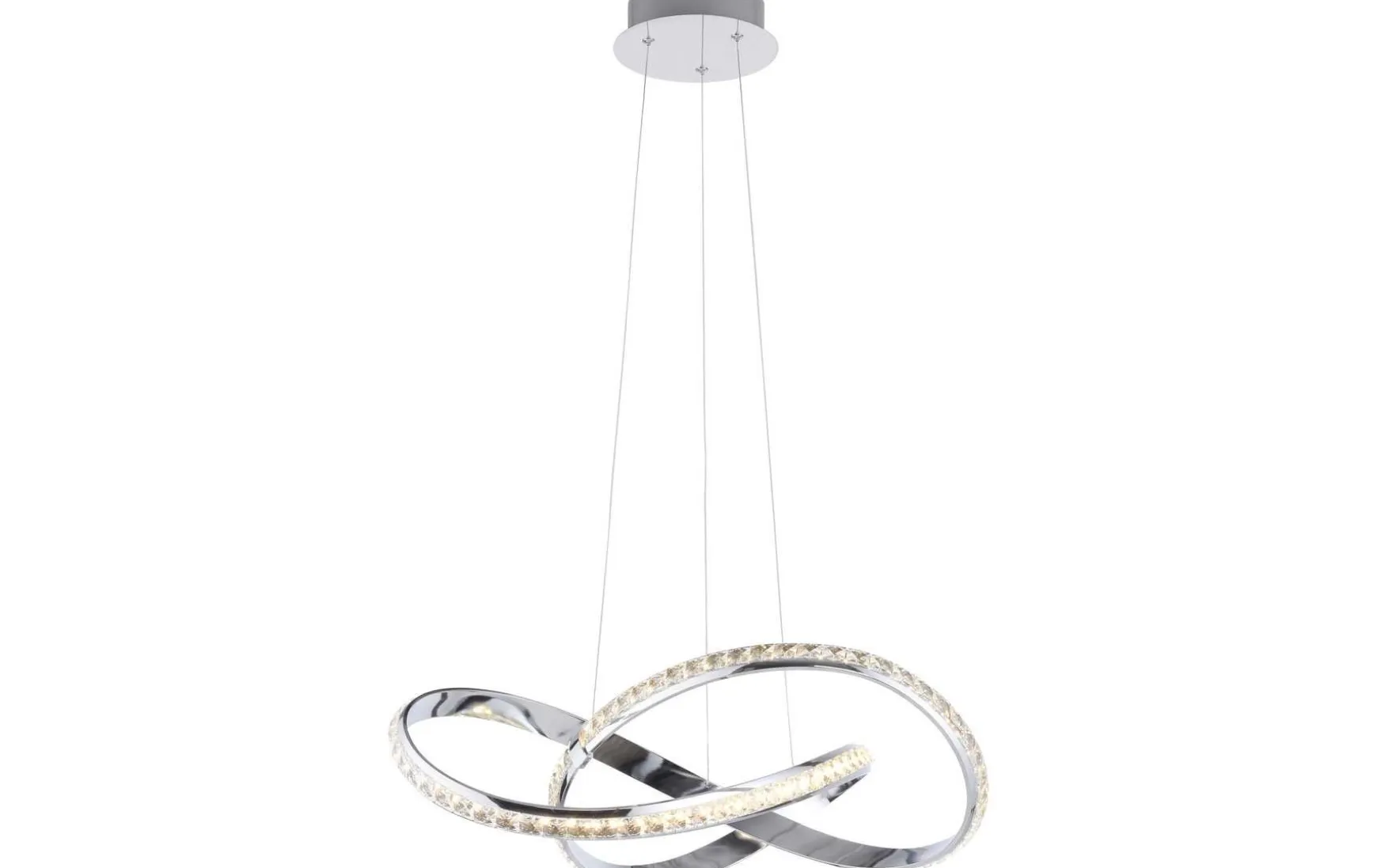 Diese LED Pendelleuchte überzeugt mit einer besonderen Form. Die geschwungene aus Eisen gefertigte Pendelleuchte in der Farbe Chrom wirkt mit einer Farbtemperatur von 3000 Kelvin angenehm warmweiß. Die Leuchte ist mit der neuen stufenlosen Dimmer-Technologie „simply dim“ ausgestattet. Simply dim macht es möglich, dass man die Leuchte über einen vorhandenen Lichtschalter, ganz egal ob Kipp-, Zug-, Schnur- oder Wandschalter, dimmen kann. Die Dimmer-Technologie steuert die Helligkeit über den Schaltimpuls und so kann die Leuchte von 100% bis runter auf 10% der Lichtintensität stufenlos gedimmt werden. Wird die Leuchte weniger als 3sec nach dem Ausschalten wieder angeschaltet, startet der Dimmvorgang. Hat sie den hellsten (100%) bzw. dunkelsten Wert (10%) erreicht, verweilt sie ca. 2sec auf dieser Einstellung, um den Vorgang abermals zu starten. Erstrahlt die Leuchte während eines Vorgangs in der gewünschten Helligkeit, kann man durch Ausschalten der Leuchte die Lichtintensität abspeichern. Schaltet man die Leuchte nun wieder an, scheint die Leuchte in der gespeicherten Helligkeit und diese Einstellung bleibt erhalten. Die Pendelleuchte ist mit einer Memoryfunktion ausgestattet so dass die letzte Einstellung der Leuchte gespeichert bleibt bis man die Einstellung wieder verändert. Durch die Kristallabdeckung gibt die Leuchte ein schönes Lichtspiel wieder.