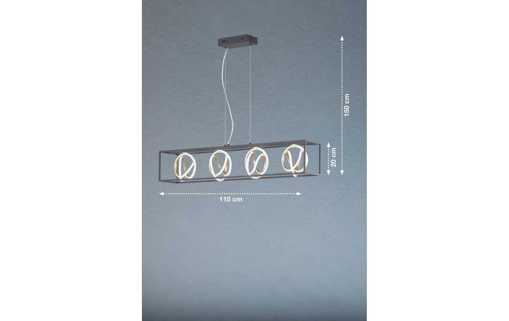 Diese LED-Deckenleuchte ist eine schwarze moderne Hängelampe mit vier Lichtpunkten. Sie ist ein Hingucker in jedem Zuhause und kommt besonders gut über dem Esstisch zur Geltung.
