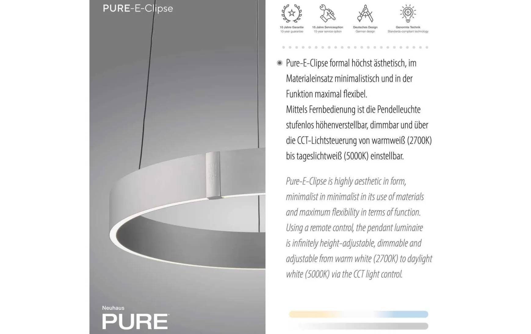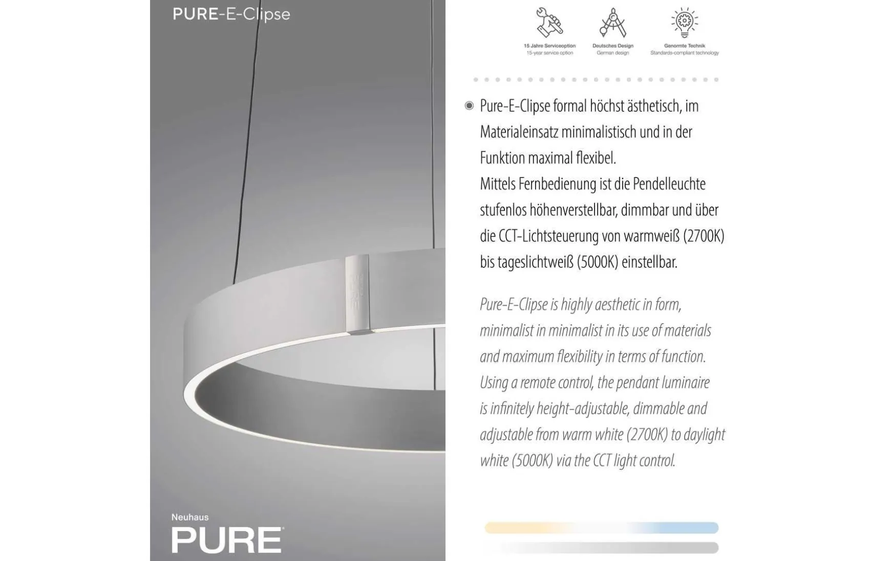 Entdecken Sie die PURE E-Clipse LED Pendelleuchte – die perfekte Kombination aus Eleganz, Funktionalität und Innovation.