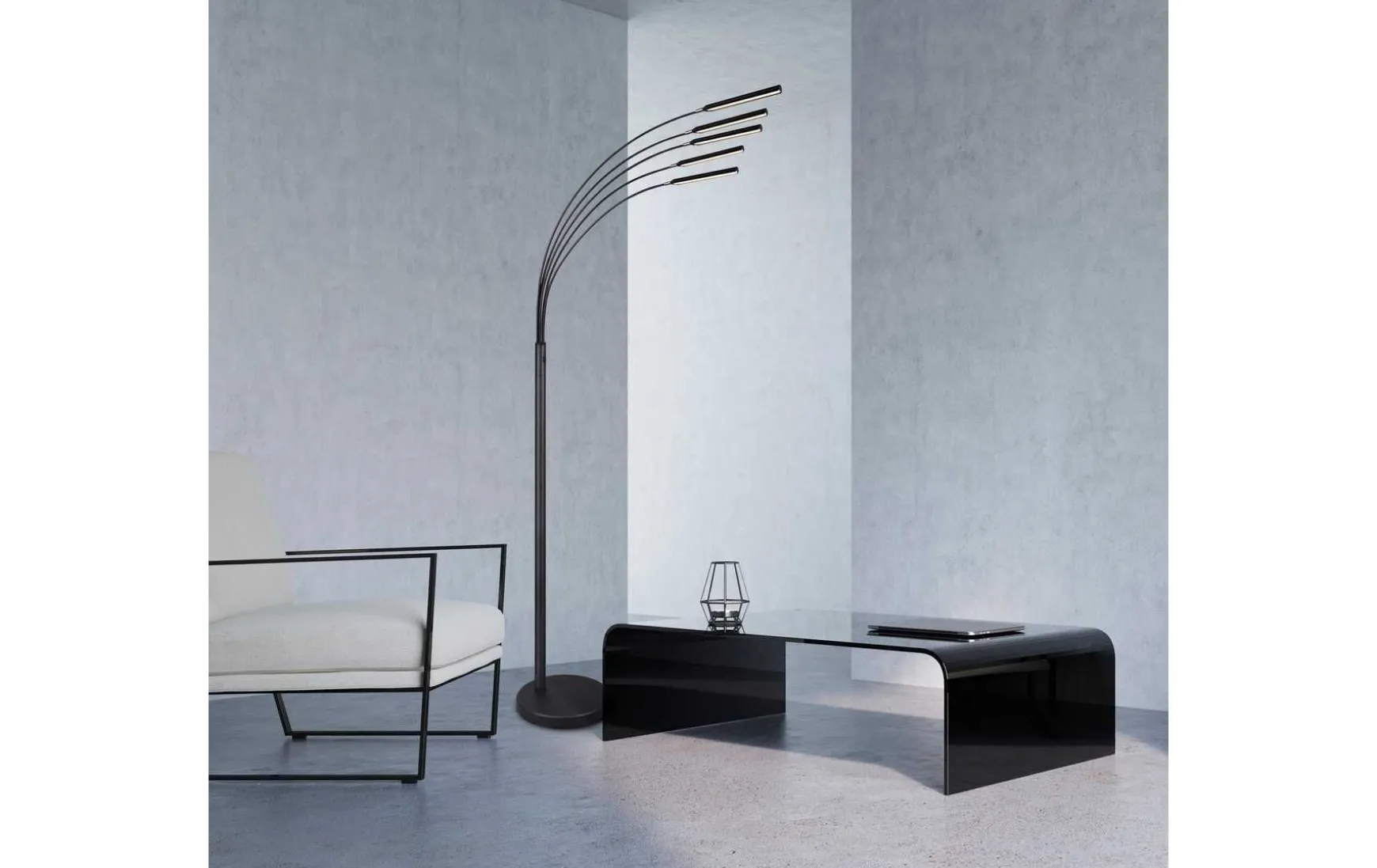 Setze Lichtakzente mit dieser fünfflammigen Stehleuchte und sorge damit für eine gemütliche Atmosphäre in deinem Wohnzimmer.