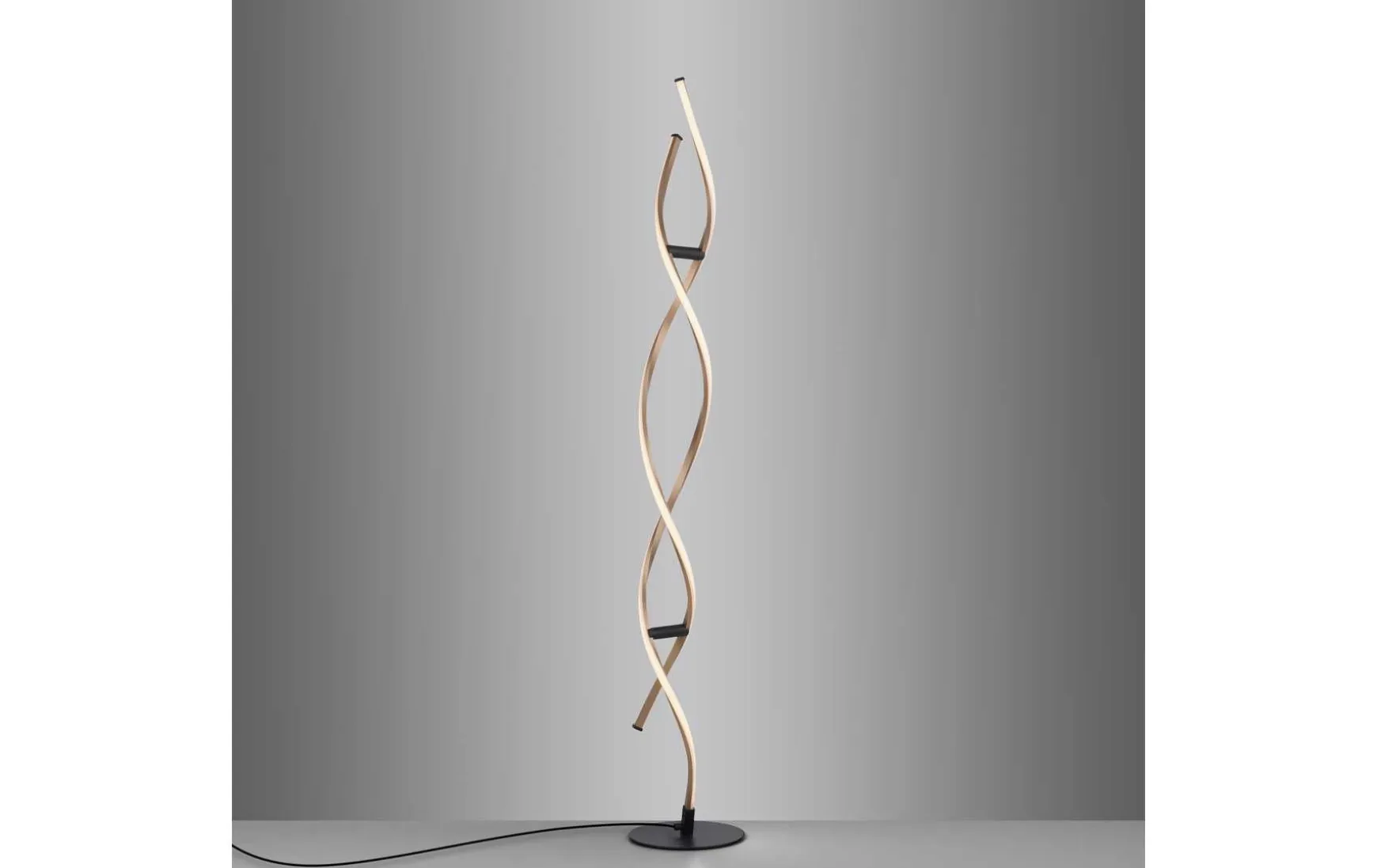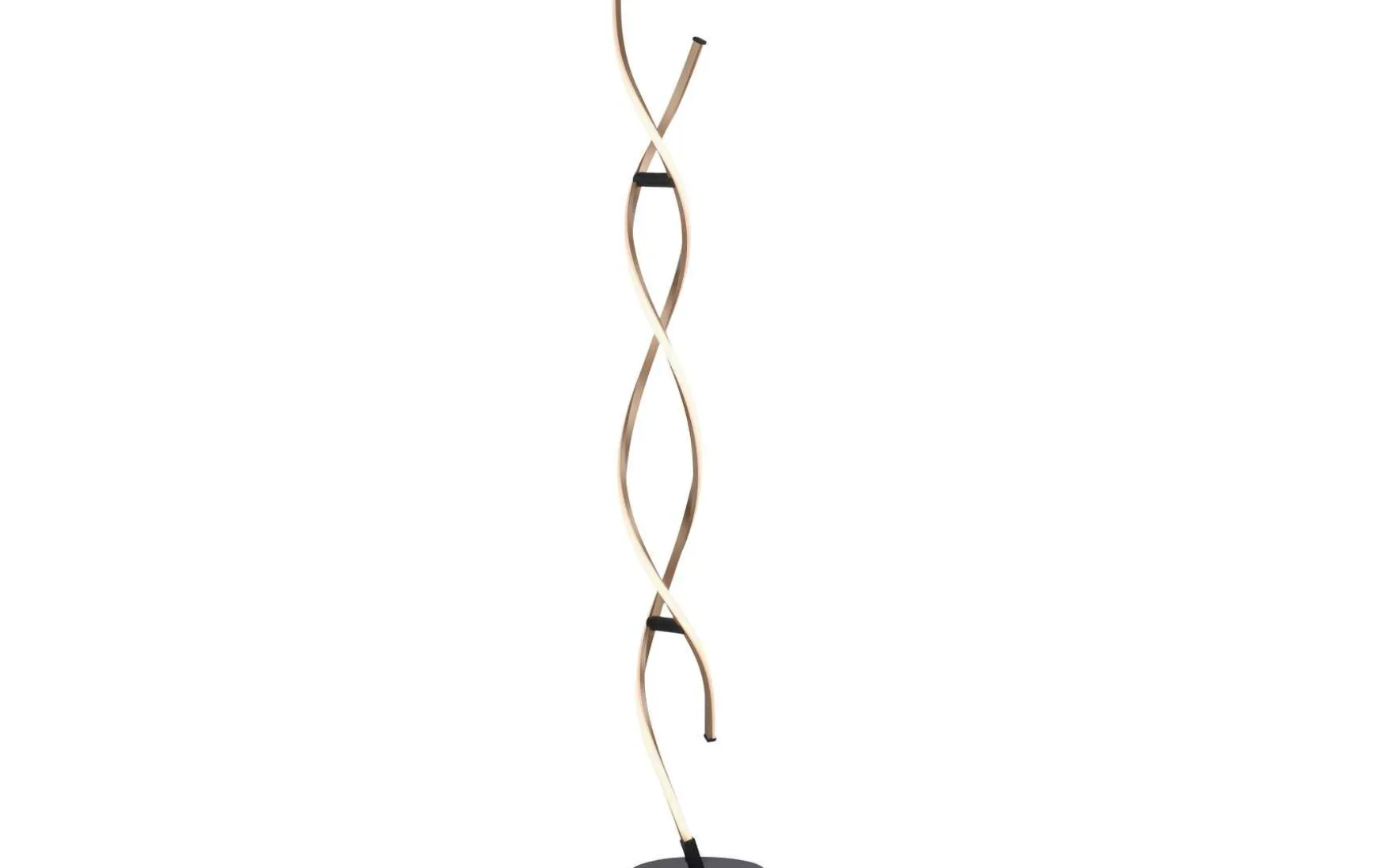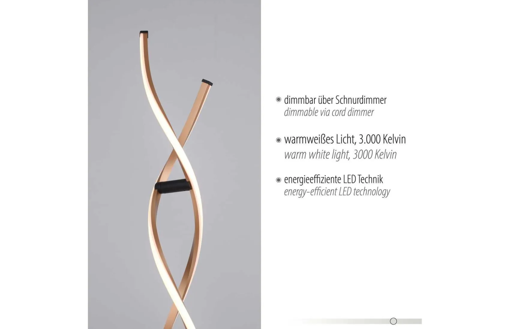 Diese modern, elegante Stehleuchte erhellt formschön Ihren Wohnbereich. Die aus Aluminium gefertigte Stehleuchte in der Farbe Messing/Schwarz ist mit einem LED-Leuchtmittel bestückt. Die geschwungene Stehleuchte verfügt über einen Schnurdimmer über den man die Helligkeit ganz nach den Bedürfnissen anpassen kann. Durch die weiße Kunststoffabdeckung gibt die Leuchte ein angenehmes warmweißes Licht wieder. Als hübsches Beistelllicht findet diese Stehleuchte garantiert einen Platz in Ihren Wohnräumen und wird schnell zu einem Blickfang.