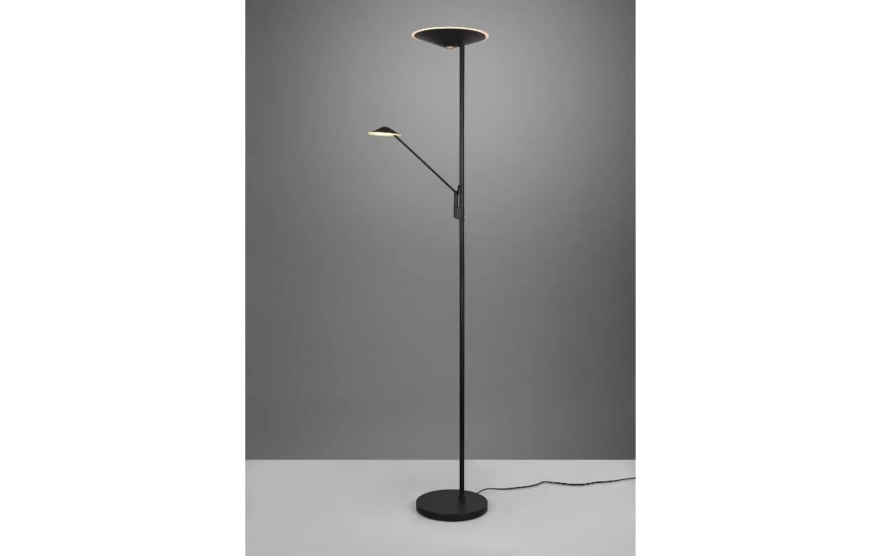 Der moderne Fluter überzeugt mit seinen praktischen Funktionen und findet neben dem Schreibtisch oder dem Sofa seinen optimalen Platz. Über einen integrierten Sensordimmer lassen sich Helligkeit sowie Lichtfarbe problemlos dimmen und einstellen. Die Hauptlichtquelle lässt sich zudem getrennt von dem Lesearm schalten, sodass Sie individuell das Licht verwenden können, welches Sie benötigen. Durch die integrierte Memory Funktion stellt sich das zuletzt eingestellte Lichtszenario automatisch wieder ein. In einem modernen Schwarz matt lässt sich die Leuchte mit vielen Einrichtungsstilen kombinieren. Darüber hinaus verfügt die Leuchte über eine moderne LED Technologie, die sich durch eine hohe Lichtqualität und Energieeffizienz auszeichnet. Im Vergleich zu herkömmlichen Halogen Leuchtmitteln lassen sich bis zu 80% der Energiekosten sparen. Zusätzlich profitieren Sie bei LED Leuchtmitteln von einer langen Lebensdauer, einer geringen Wärmeentwicklung und schonen gleichzeitig die Umwelt.