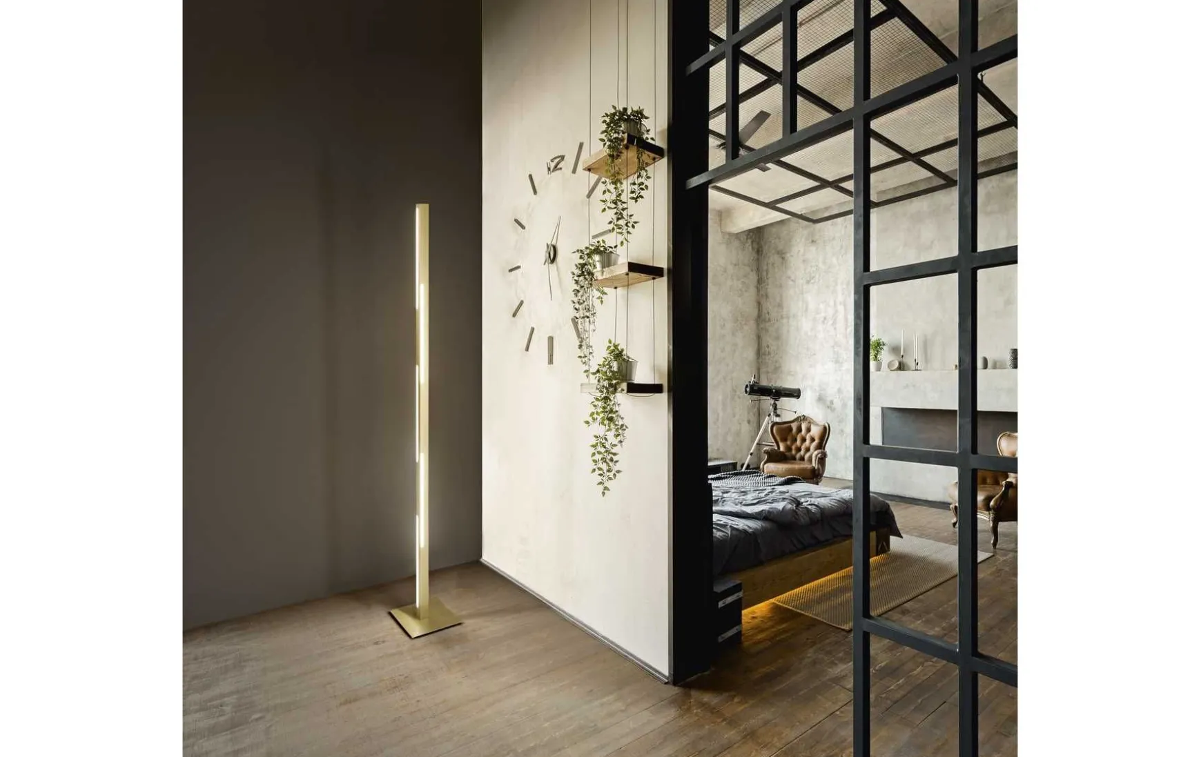 Funktionelle Trend LED-Stehleuchte im Vierkantrohrdesign, stufenlos dimmbar über Fussdimmer