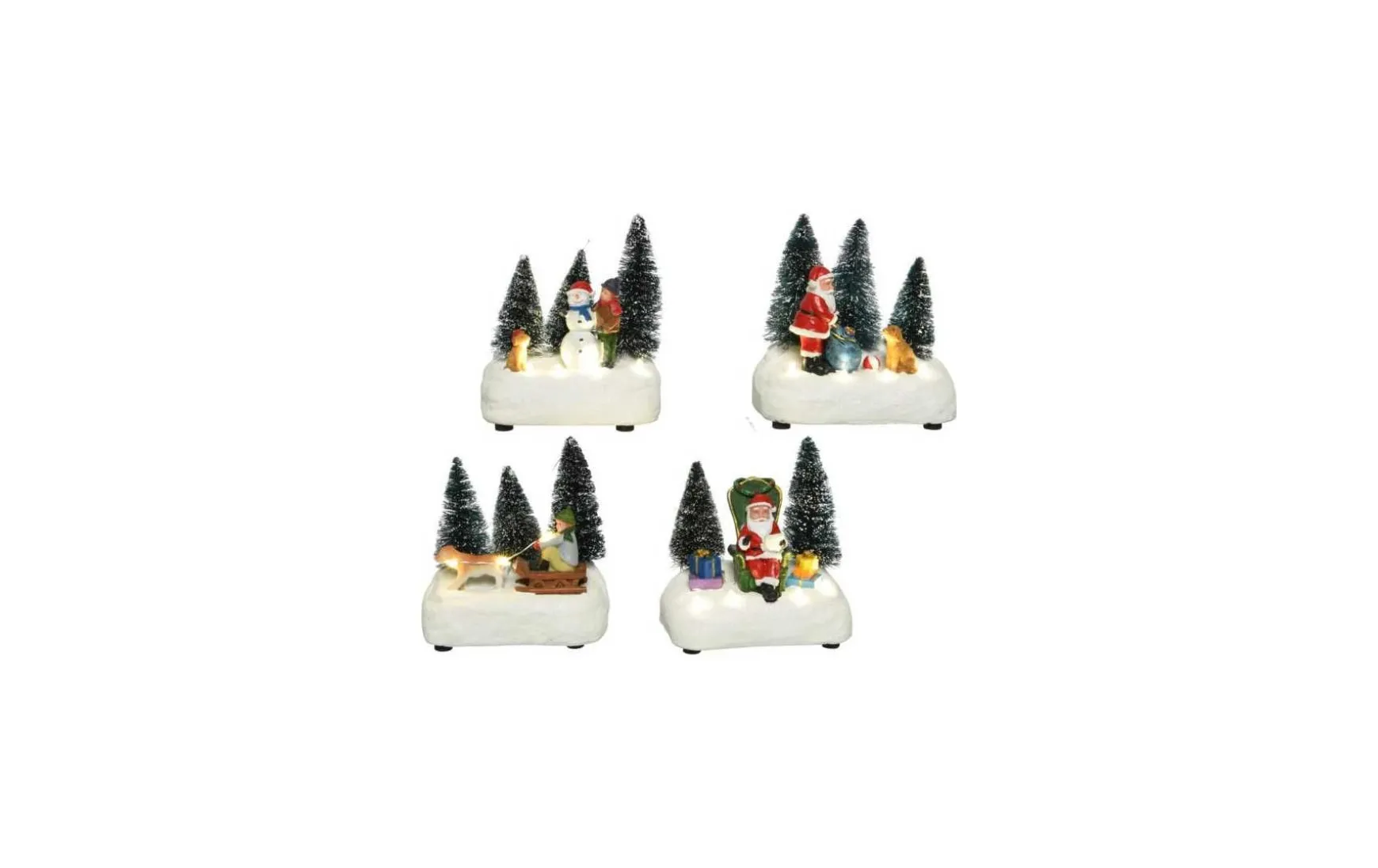 Bringen Sie die weihnachtliche Atmosphäre in Ihr Zuhause mit dieser beleuchteten märchenhaften Weihnachtsszene, komplett mit einem Weihnachtsbaum. Mit seinen drei integrierten LEDs verbreitet diese Dekoration ein warmweißes Licht und sorgt für eine freundliche Atmosphäre in Ihrem Zuhause. Die Lichtszene funktioniert über das Netzwerk oder mit 2 AAA-Batterien und passt daher problemlos in jeden Raum und jede Ecke des Hauses. Batterien sind separat erhältlich.