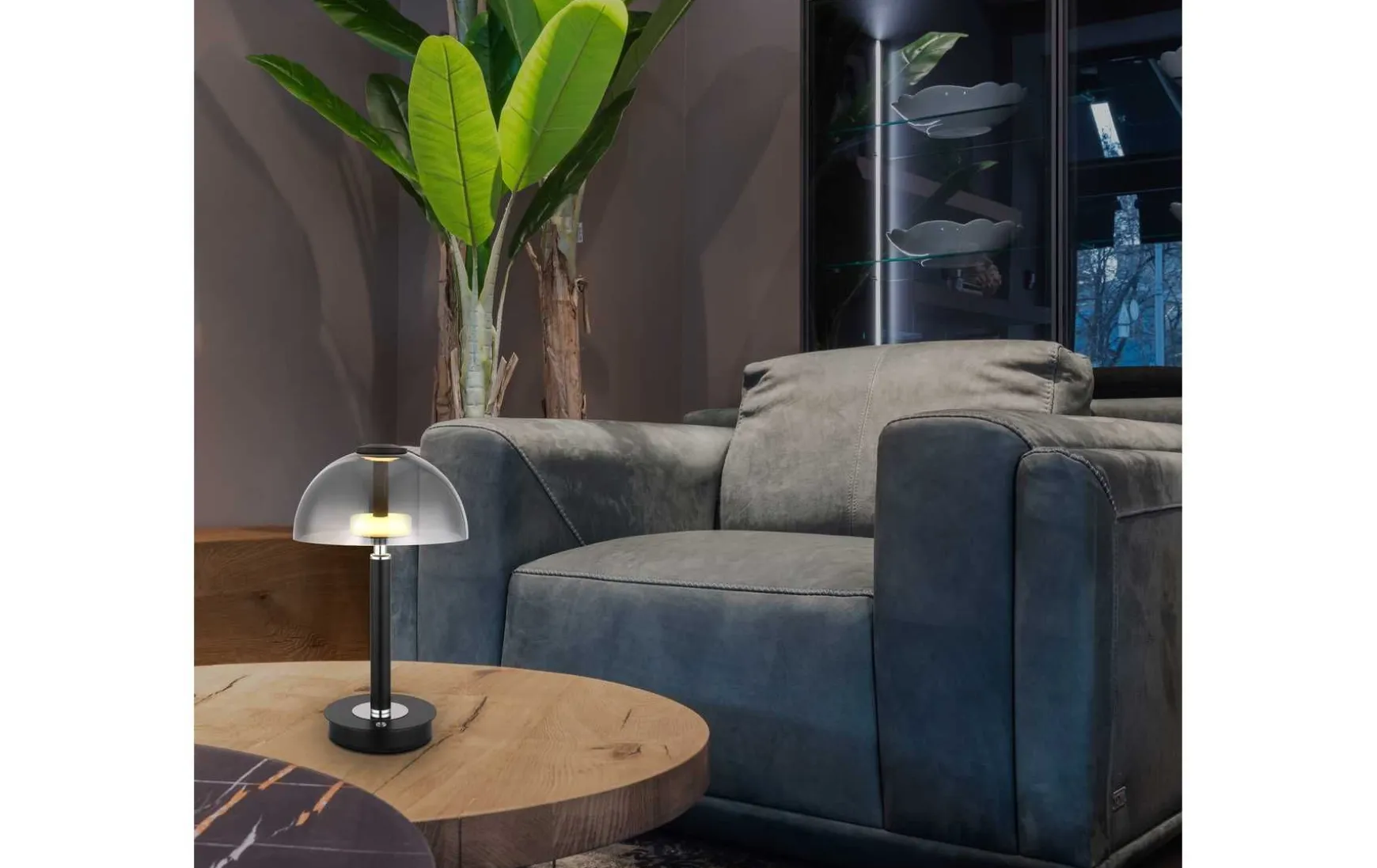 Der rauchfarbene Glaschirm erzeugt ein angenehmes und diffuses Licht.