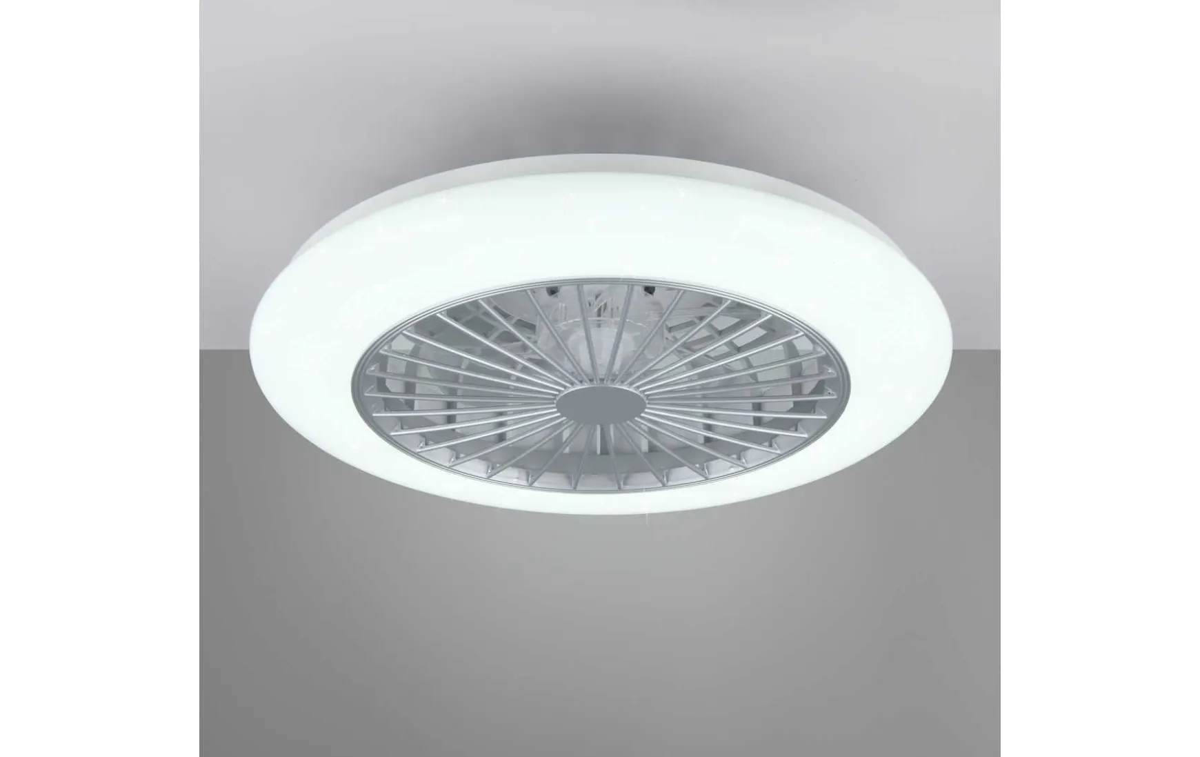 Unser Alltag bietet viele verschiedene Situationen, die jeweils unterschiedliche Lichtarten und Funktionen erfordern. Diese Deckenleuchte mit integriertem Ventilator ist ein perfektes Beispiel dafür, wie Funktionalität und Design harmonieren können und verschiedenen Anforderungen im Alltag gerecht werden. Die beiliegende Fernbedienung ermöglicht die Steuerung des Ventilators sowie die Lichteinstellungen und eine Einstellung des Timers. Der integrierte Ventilator verfügt über drei Geschwindigkeitsstufen und gewährleistet neben einer Abkühlung im Sommer auch in der kalten Jahreszeit eine ideale Verteilung der Heizungsluft. Die Lichtfarbe der Deckenleuchte kann in drei Stufen oder stufenlos von 3000-6500 Kelvin eingestellt werden. Zusätzlich verfügt die Leuchte über einen integrierten Dimmer und eine Nachtlichtfunktion, die ebenfalls bei Bedarf über die Fernbedienung zu steuern ist. Der Timer kann für eine Betriebszeit von einer, zwei oder vier Stunden programmiert werden. Die weiße Deckenleuchte mit Starlight-Cover und titanfarbigen Elementen, lässt sich mit vielen Einrichtungskonzepten kombinieren. Darüber hinaus verfügt die Leuchte über eine moderne LED Technologie, die sich durch eine hohe Lichtqualität und Energieeffizienz auszeichnet. Im Vergleich zu herkömmlichen Halogen Leuchtmitteln lassen sich bis zu 80% der Energiekosten sparen. Zusätzlich haben LED Lichtquellen eine lange Lebensdauer, produzieren weniger Wärme und schonen die Umwelt.