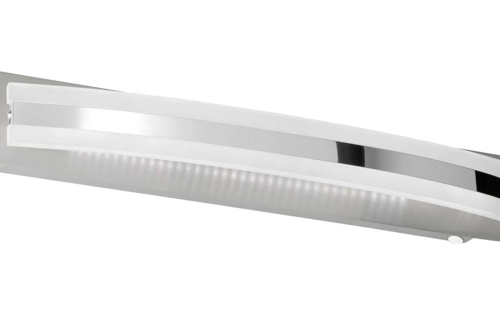 Wandleuchte Kos | | nickelfarben matt chromfarben | Acrylglas – weiß – satiniert – B: 48,00 cm | H: 7,50 cm Ausladung Wand: 9,00 cm 1x LED 9,0 W, inkl., mit Taster stufenlos dimmbar 3000 K 1100 lm