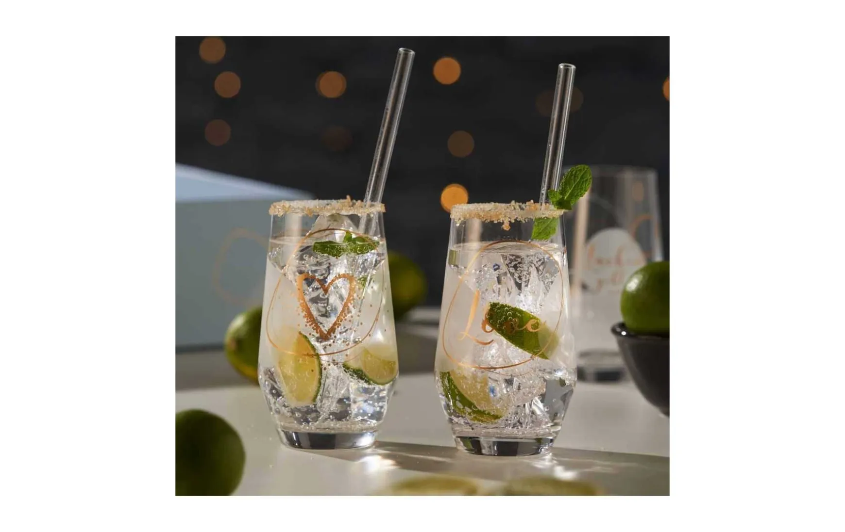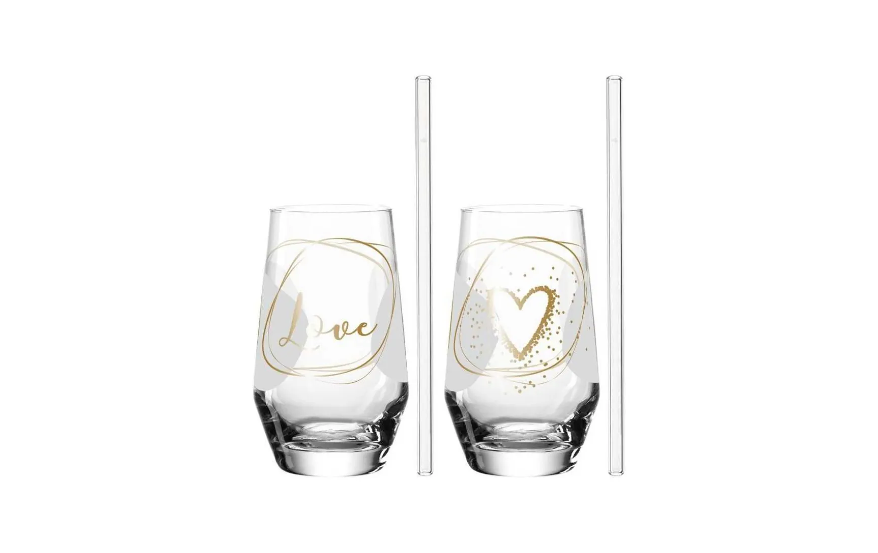 Diese zwei Trinkgläser mit dem Motiv Herz und dem Wort ‚Love‘ inklusive Glastrinkhalme sind in der originellen Geschenkverpackung eine großartige Geschenkidee. Diese zwei Trinkgläser sind optimal als Geburtstagsgeschenk für Ihre Freundin oder Freund. Geschenke, die ohne viele Worte Ihre Liebe zeigen. Das Bar-Glas ist für klassische Longdrinks und Cocktails ebenso optimal geeignet, wie für alkoholfreie Getränke. Das Teqton-Glas garantiert dauerhafte Brillanz und Transparenz und ist somit langanhaltend kristallklar. Sie sind spülmaschinengeeignet und somit besonders praktisch im Alltag. Belohnen Sie sich mit schönen Dingen in Ihrem Alltag. 2 Trinkgläser mit 2 Glastrinkhalmen erhalten Sie in diesem Set. Warten Sie nicht länger – mit dem schönen Trinkglas wird der Alltag zum Genuss! Dieser Artikel macht sich außerdem hervorragend als Geschenk!