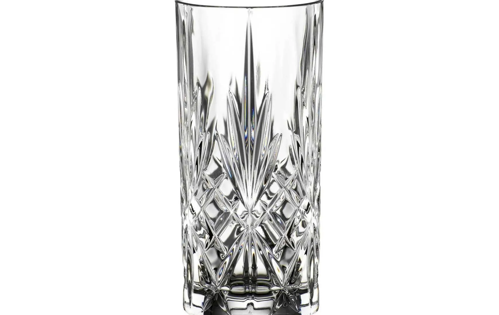 Mit herrlichem Kristallschliff ergänzt der Longdrinkbecher Ihre gut ausgestattete Bar.