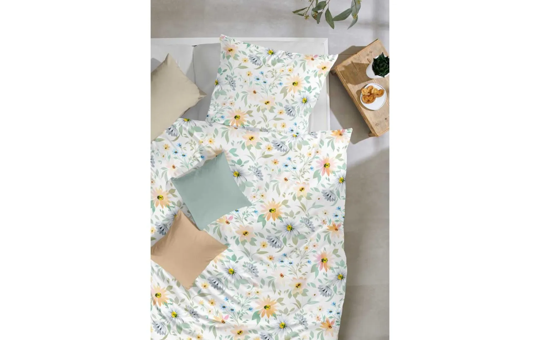 - Design: Blumen Apricot/Blau