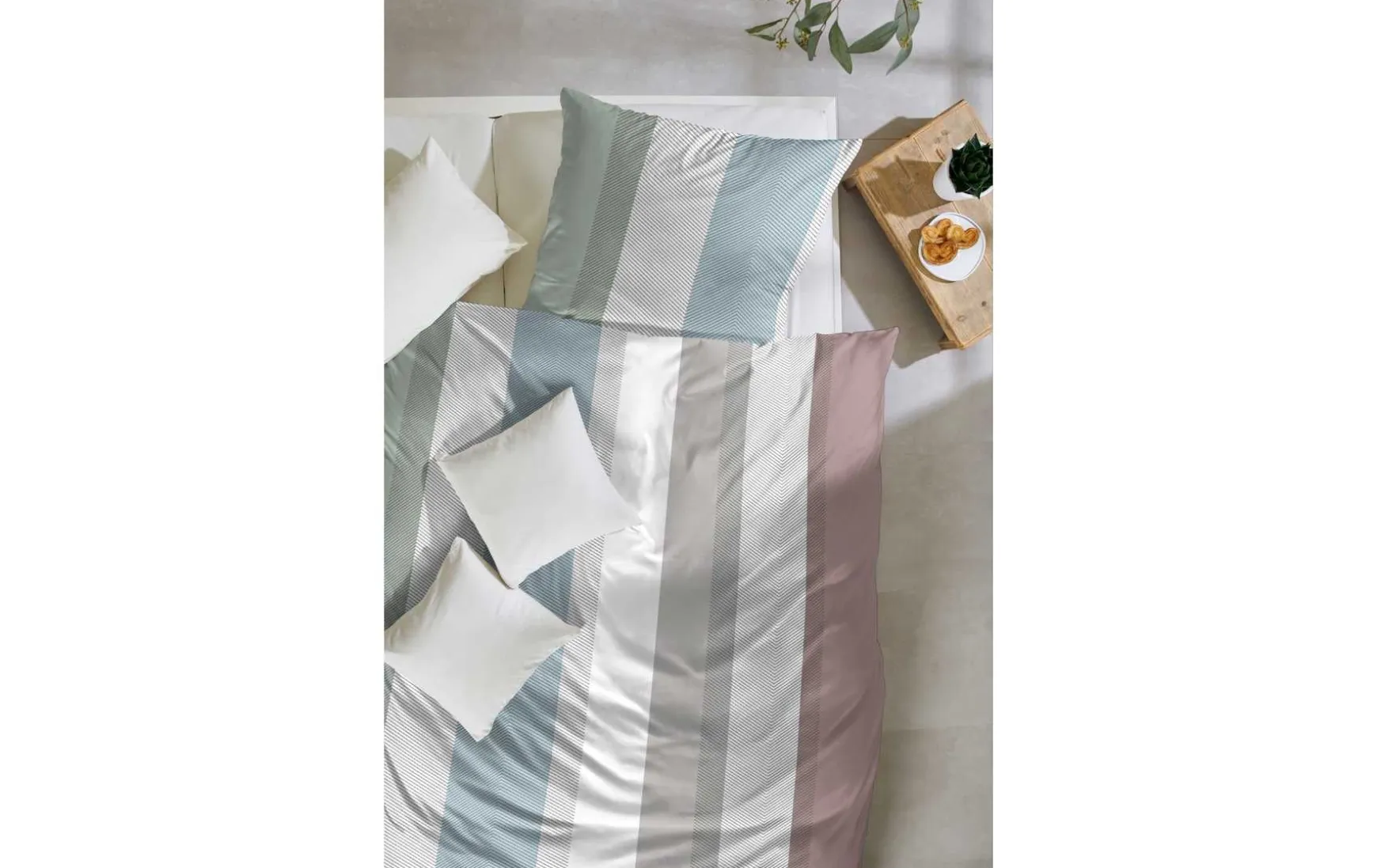 Die Makosatin-Bettwäsche aus 100 % Baumwolle verbindet luxuriösen Glanz mit höchstem Schlafkomfort. Dank der feinen Satin-Webart erhält die Oberfläche eine besonders glatte, leicht schimmernde Struktur, die sich angenehm weich auf der Haut anfühlt und ein elegantes Ambiente im Schlafzimmer schafft.
