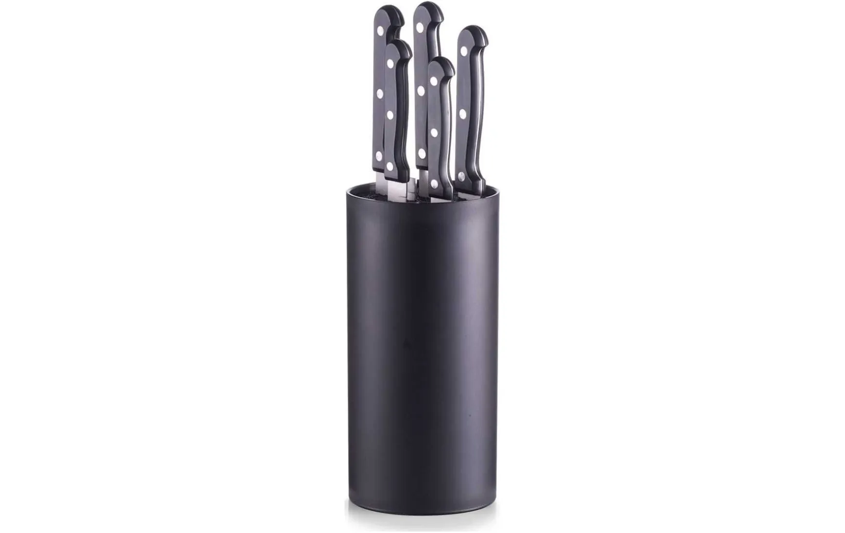 - Messerblock und -griffe aus robustem Kunststoff gefertigt, Messerklingen aus rostfreiem Edelstahl