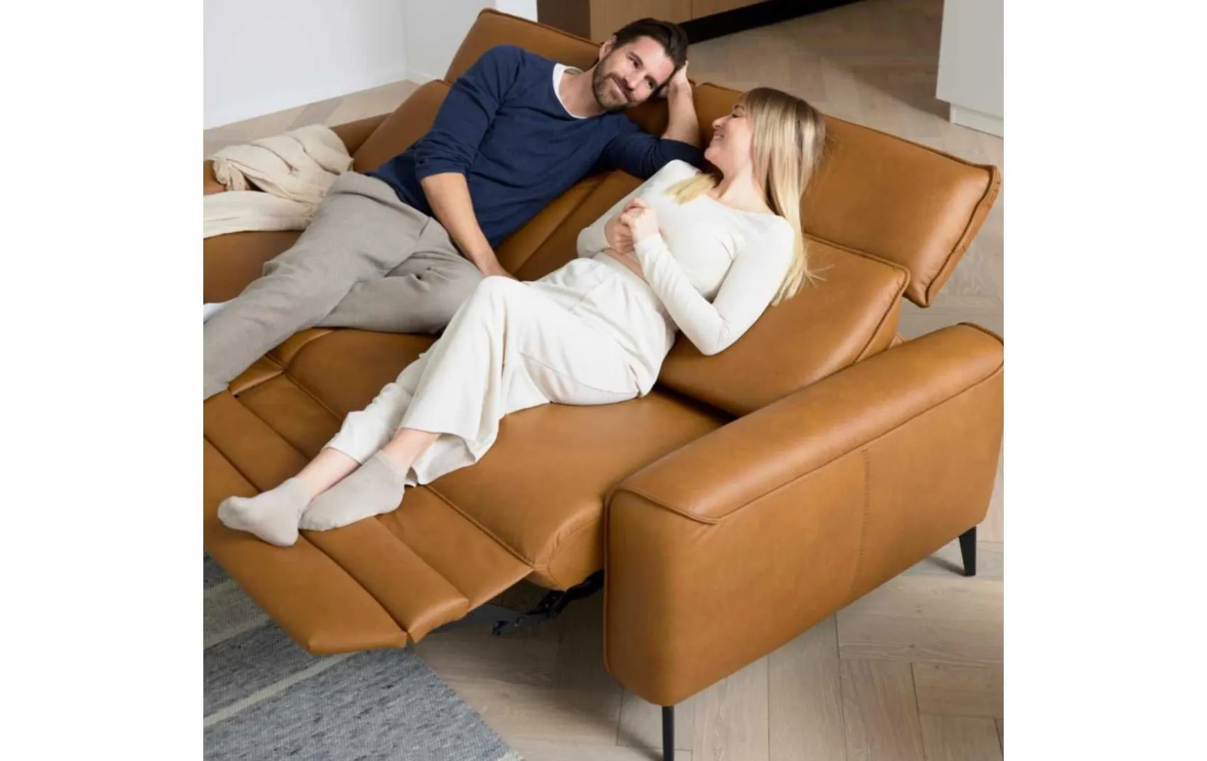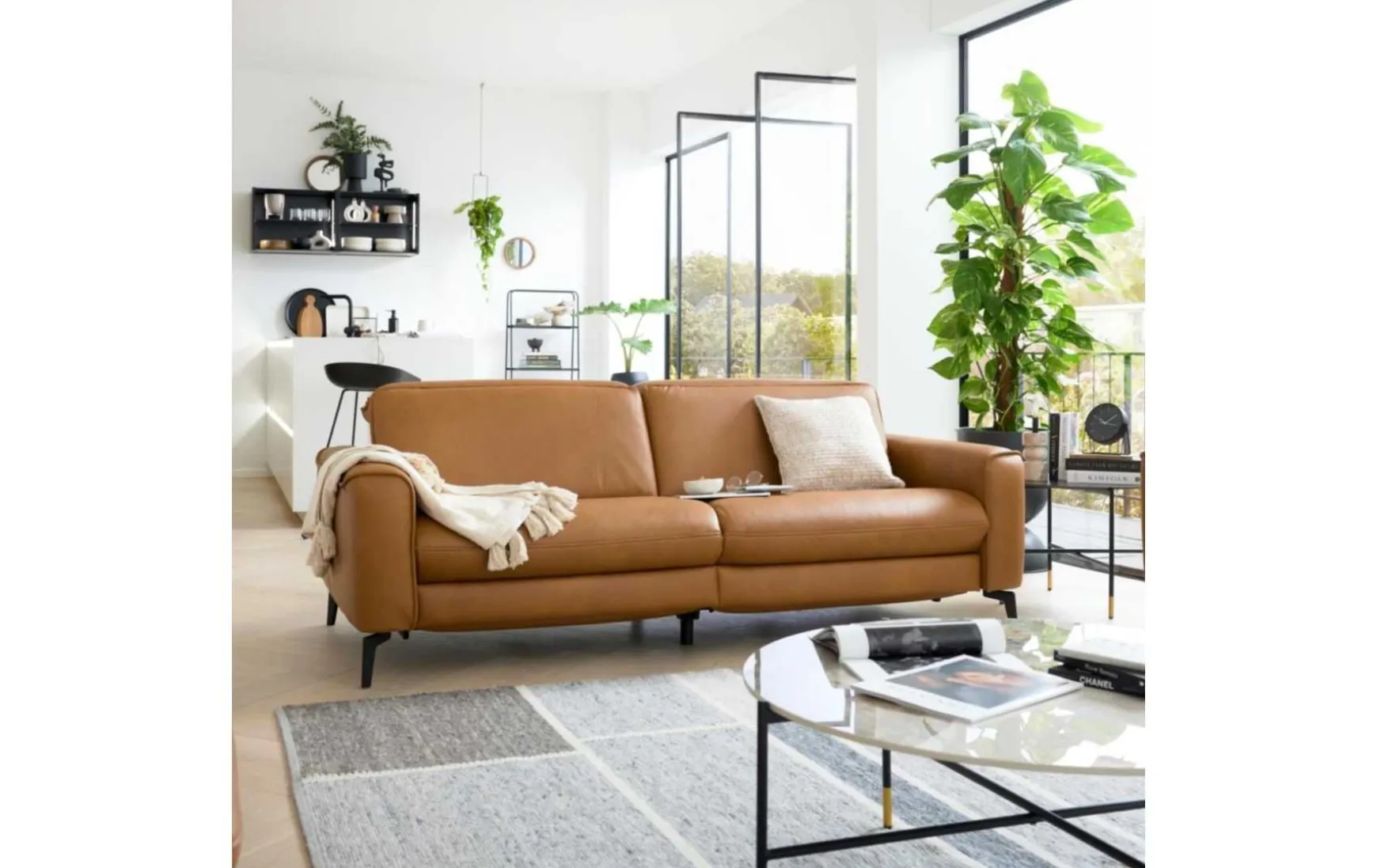 Erleben Sie den Hauch von Luxus und Stil mit diesem herausragenden 2,5-Sitzer, der mit einem lebendigen Lederbezug und markanten Metallfüßen in tiefem Schwarz beeindruckt. Diese Kombination aus kraftvollen Farben und modernem Design verwandelt jeden Raum in eine Oase der Eleganz und des Komforts.