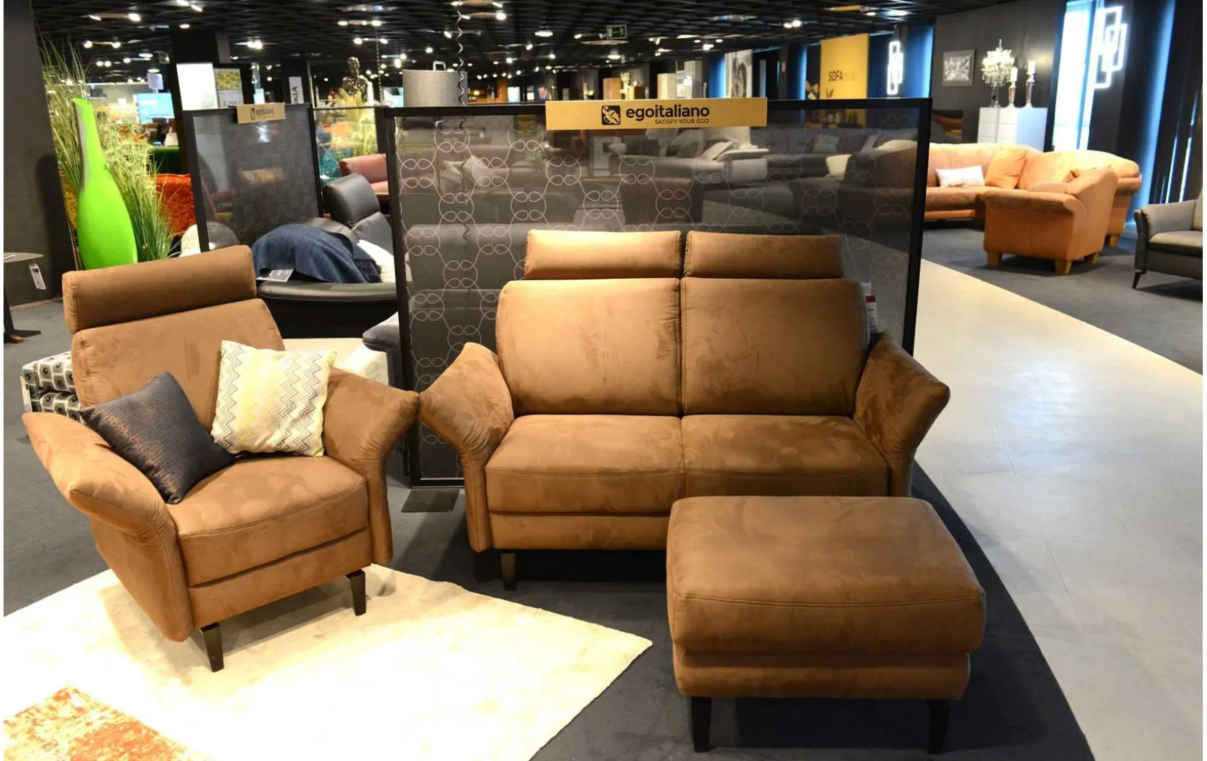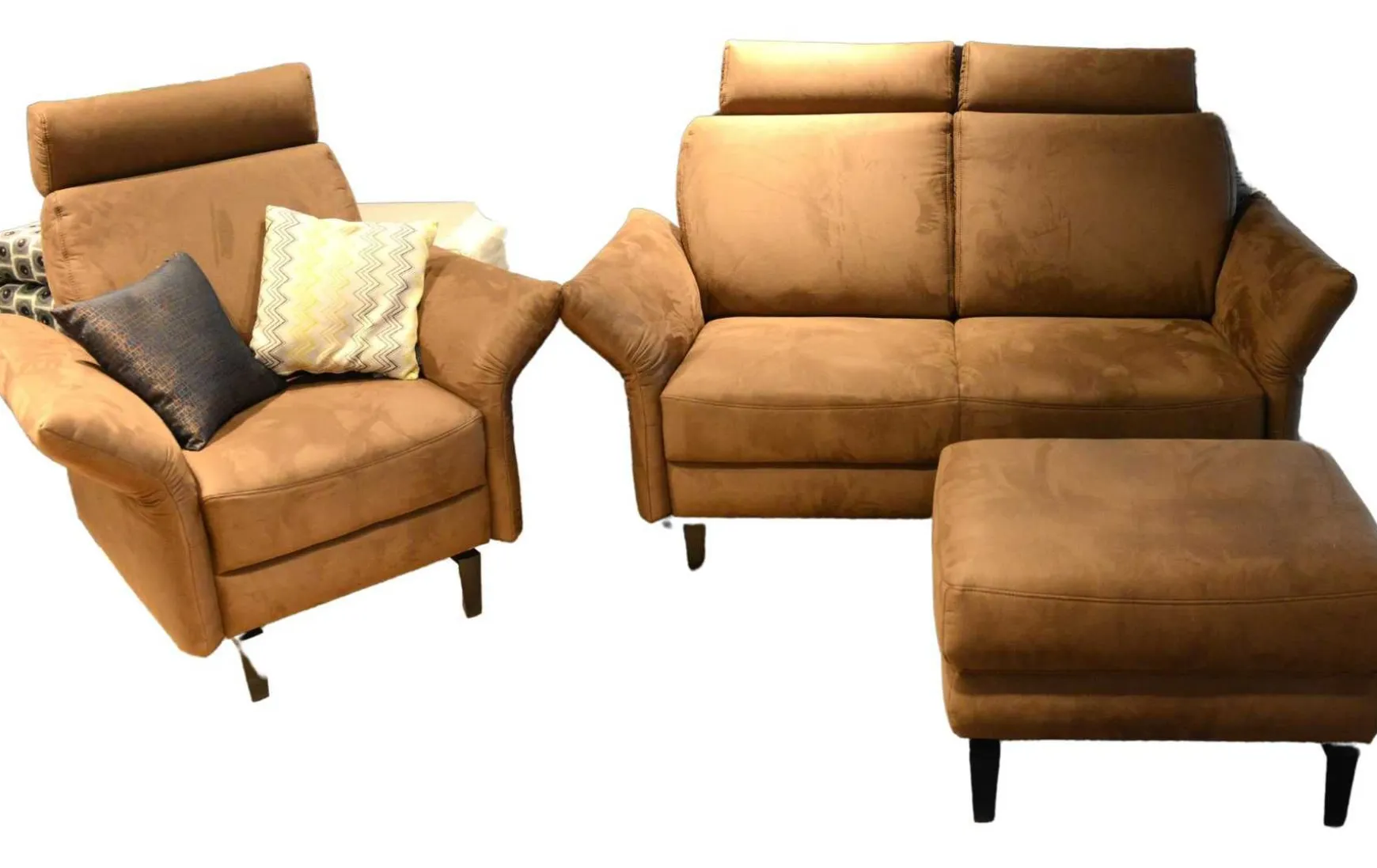 Diese tolle Garnitur besteht aus 2-Sitzer, Sessel und Hocker