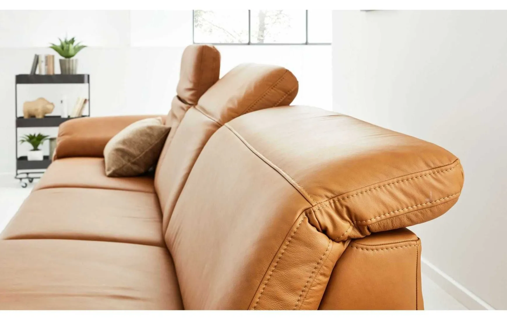 Dieses Ecksofa von Hukla zeichnet sich durch sein modern-elegantes Design und die hochwertige Verarbeitung aus. Dank des voll durchgeschäumten Federkerns und der drei preisgleich erhältlichen Sitzhärten genießen Sie auf der edlen Ledercouch angenehm festen Sitzkomfort. Dazu trägt auch der Rücken mit Kaltschaumpolsterung bei. Das Glattleder mit feiner Lederstruktur und softem Griff wird Sie begeistern. Die Sitzhöhe beträgt ca. 46 cm, bei einer Sitztiefe von ca. 53 cm. Insgesamt hat die Ledercouch eine Stellfläche und ein Schenkelmaß von ca. 347 x 176 (LxB, von links nach rechts).