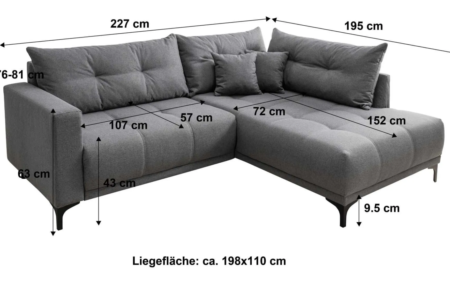 - Schenkelmaß rechts: ca. 195 cm