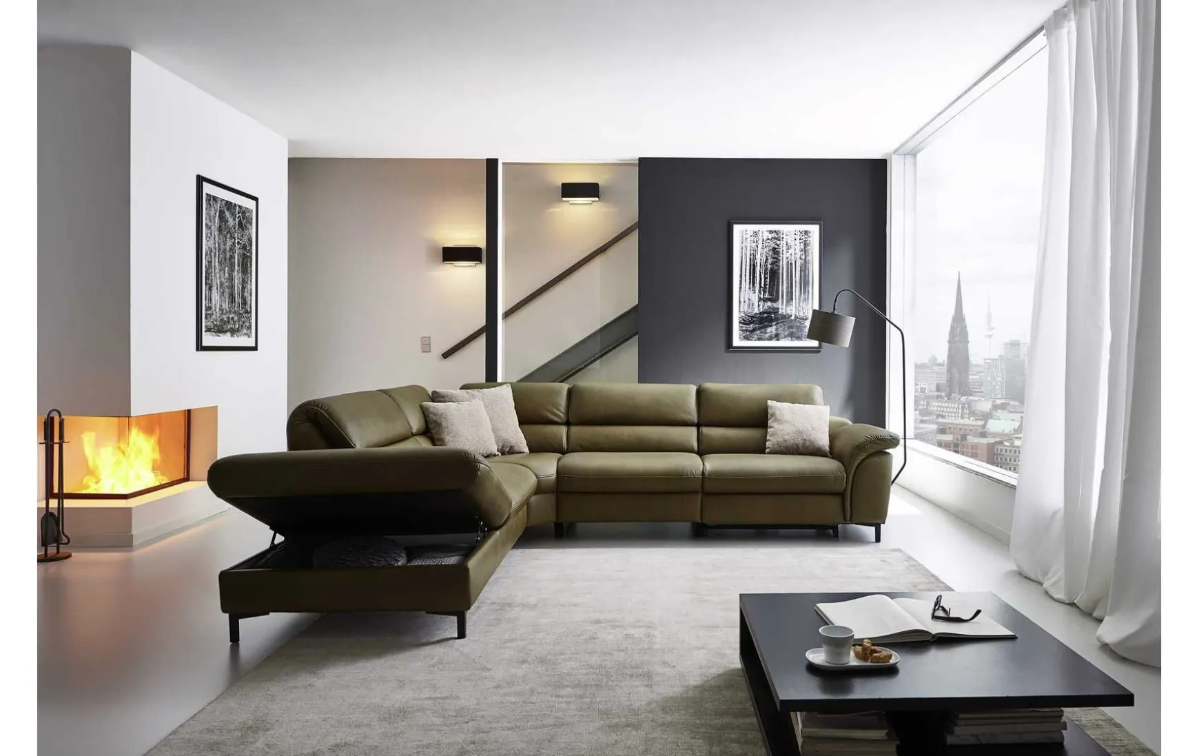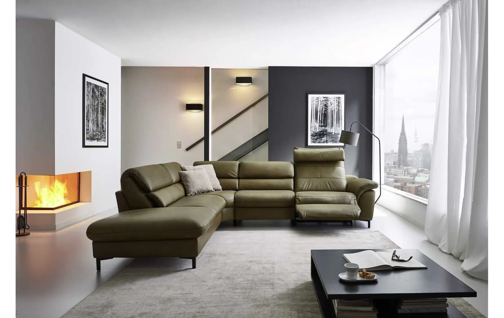 - Gegen Mehrpreis erhältlich: Rücken echt, Armlehnen verstellbar, Anstellhocker klappbar, Relaxrücken
