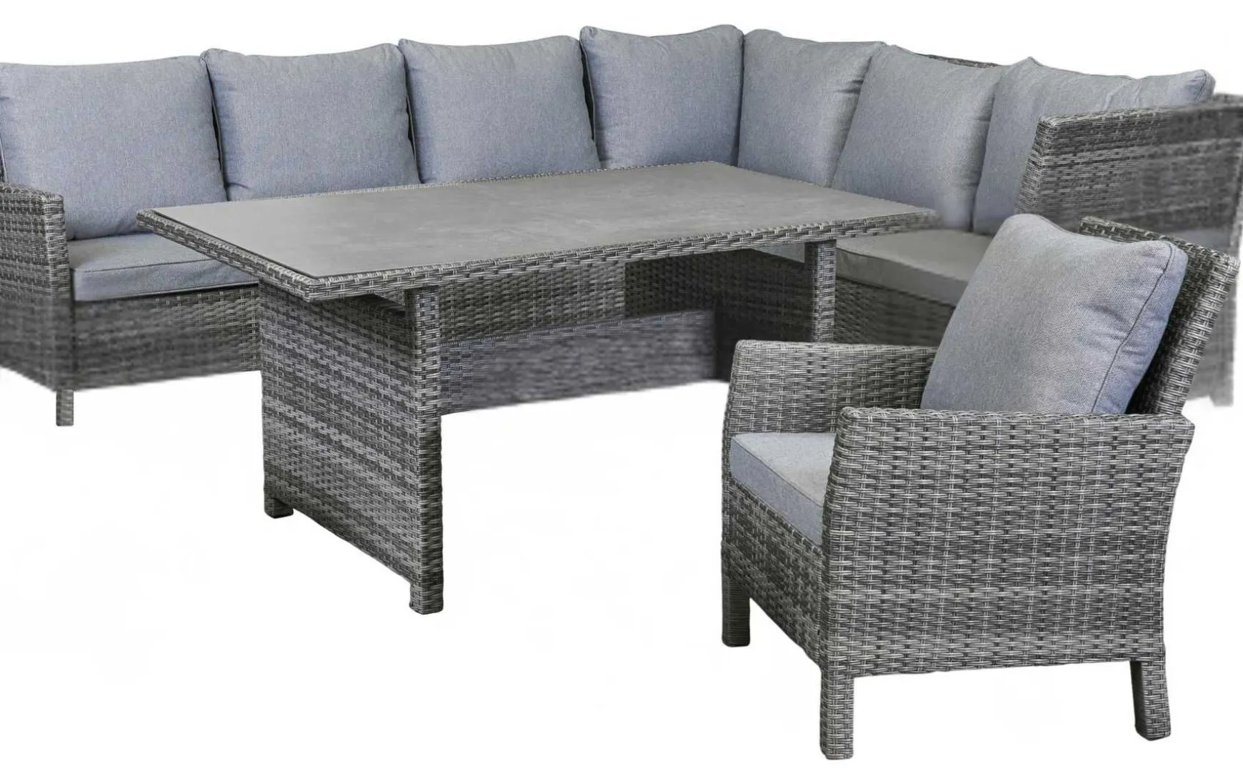 - Im Preis enthalten: Couchtisch, Eckbank, Rücken- und Sitzkissen