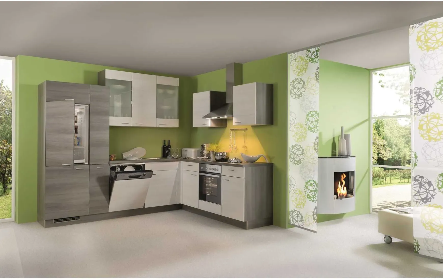- Nicht im Preis enthalten: Abgebildete Dekoration, Geschirrspüler, Kohlefilter und Armatur