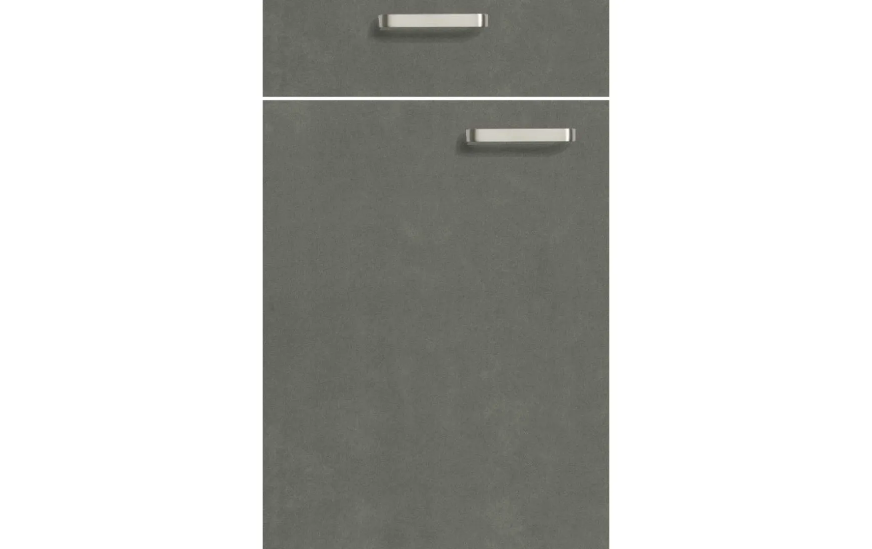 Diese Einbauküche kombiniert zwei Farben und bereichert Ihr Haus mit einem modernen Stil. Dank Ihres kompakten Formats passt sie auch in kleinere Räume und überzeugt hier mit einer zweckmäßigen E-Geräte-Ausstattung, viel praktischem Stauraum und einem modernen Gesamtdesign. Die Fronten sind in Betongrau und die Arbeitsplatte sowie Korpus und Sockel in Anthrazit gehalten. Die Farbe spiegelt sich im Design der Oberschränke wieder. Die Oberschränke eignen sich als zusätzlicher Stauraum oder zum Dekorieren, damit Sie Ihrer Küche eine ganz persönliche Note verleihen können.
