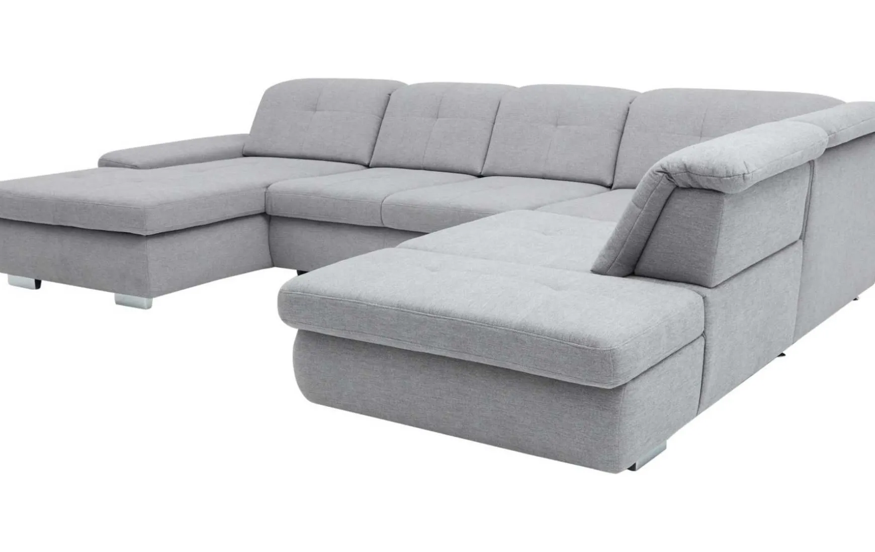 Diese Wohnlandschaft ist modern und gemütlich gestaltet. Sie kombiniert einen silberfarbenen Chenillebezug mit glänzenden Metallfüßen. Für erstklassigen Komfort sorgen der Sitz mit einer hochwertigen Federkernpolsterung, die auf einer optimal stützenden Wellenunterfederung gelagert ist, sowie der mit weichem Kaltschaum gepolsterte Rücken. Aus den folgenden vier Elementen besteht diese Polsterecke: dem Canape CanLST mit Armlehne links, dem 2,5-Sitzer 2,5ELST ohne Armlehnen, der Spitzecke SE und dem 1,5-Sitzer 1,5STAhor mit offenem Abschluss rechts. Die Stellfläche der Sitzlandschaft beläuft sich auf ca. 371 x 260 cm (BxL, von links nach rechts) und die Schenkelmaße betragen ca. 195 x 371 x 260 cm (TxLxT, von links nach rechts). Während die Sitzhöhe bei ca. 47 cm liegt, können Sie die Sitztiefe beliebig zwischen ca. 59 und 79 cm variieren. Diese Sitztiefenverstellung bringen sämtliche Sofas der Serie MM-MP1044 mit. Darüber hinaus sind die Rückseiten im Originalstoff bezogen.