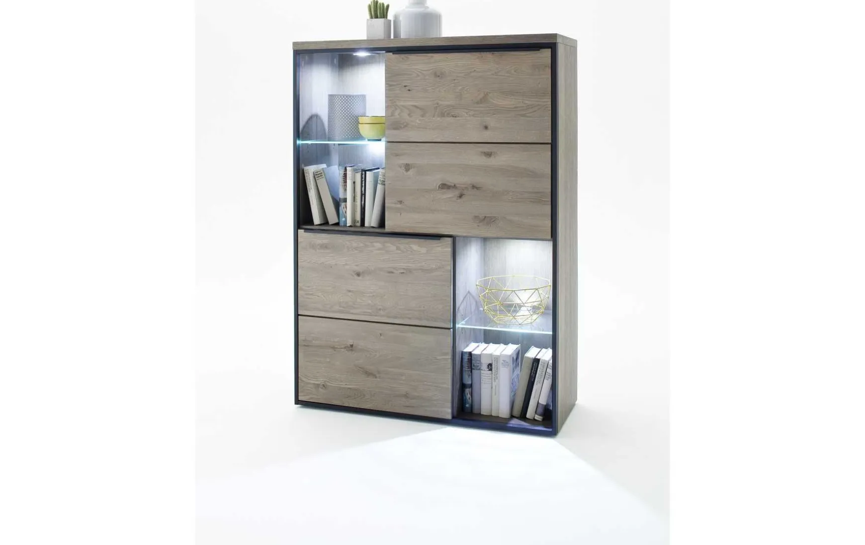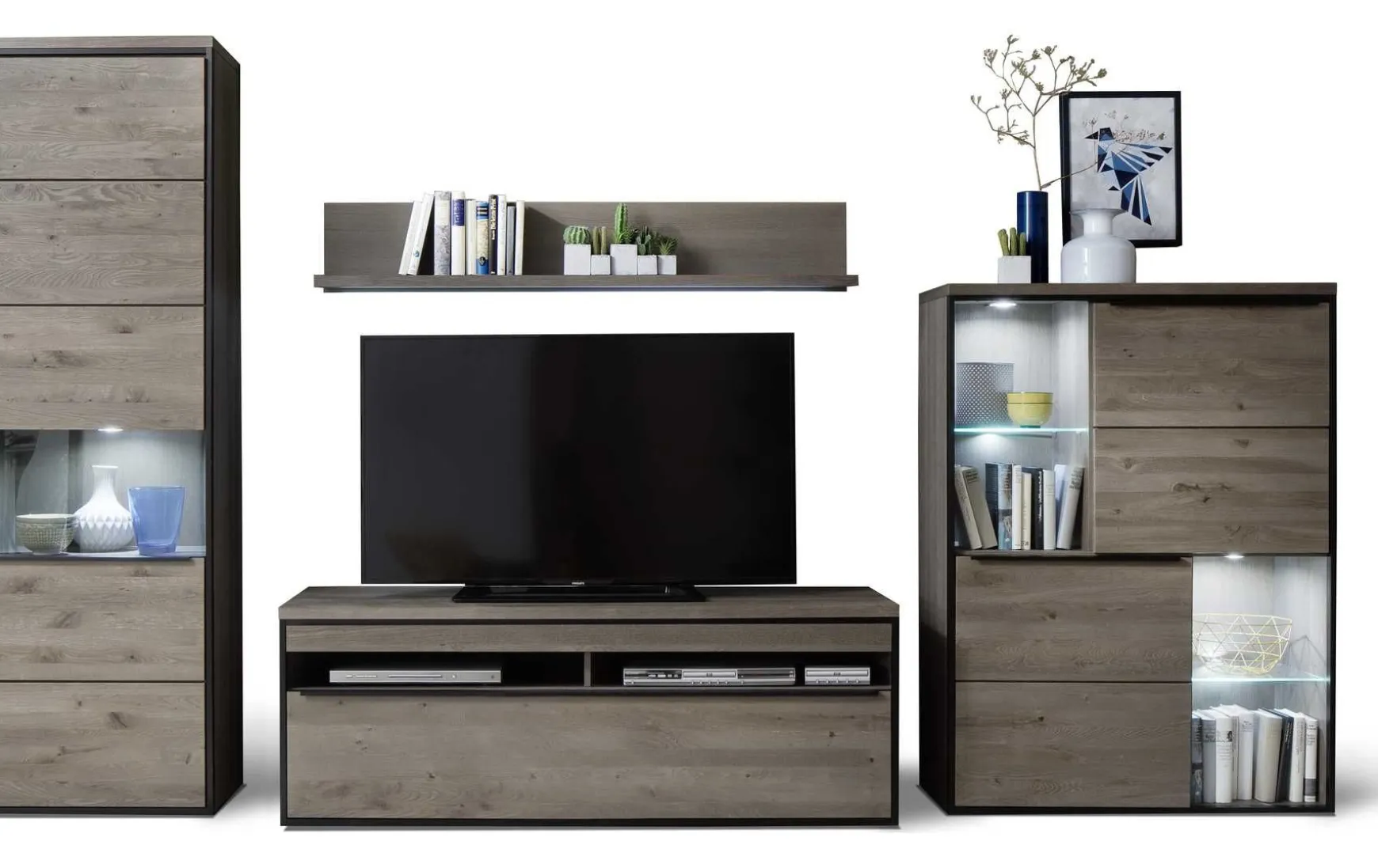 - Im Preis enthalten: Wohnwand, LED-Band-Beleuchtung