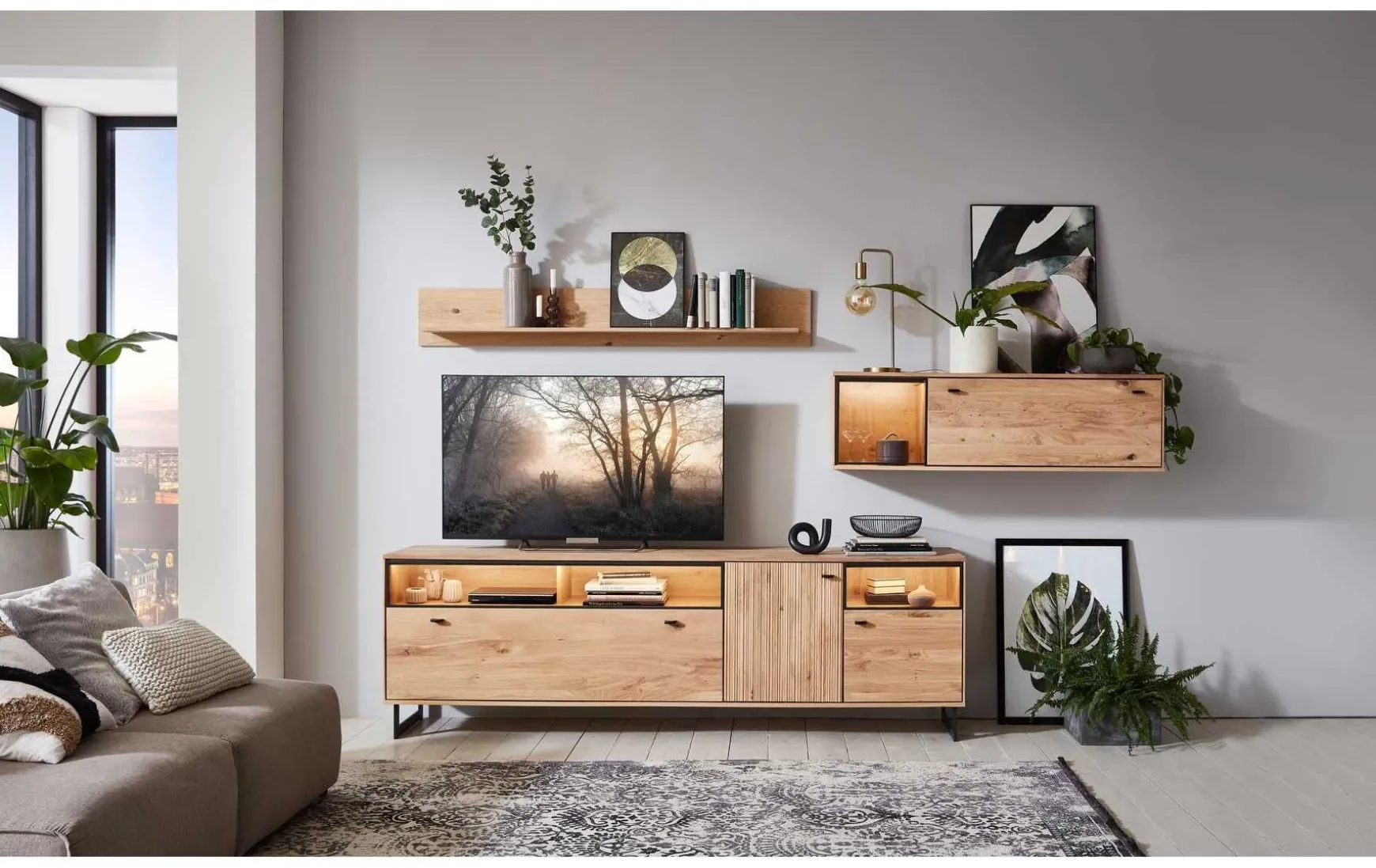 - Im Preis enthalten: Lowboard, Hängeschrank, Wandboard, LERD Beleuchtung