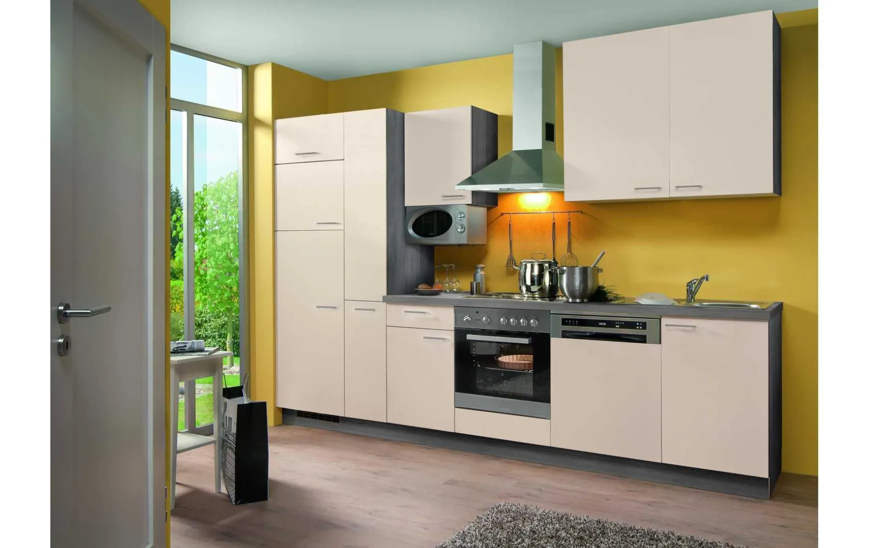Mit dieser Küchenzeile in Magnolia matt bieten wir Ihnen ein Komplettangebot zu einem tollen Preis-/Leistungsverhältnis. Hervorzuheben sind die Kühl- Gefrierkombi, die Unterbau-Mikrowelle sowie der Vorrats- Auszugsschrank. Durch 3 Hängeschränke ergeben sich viele Möglichkeiten, Ihre Kochutensilien zu verstauen.
