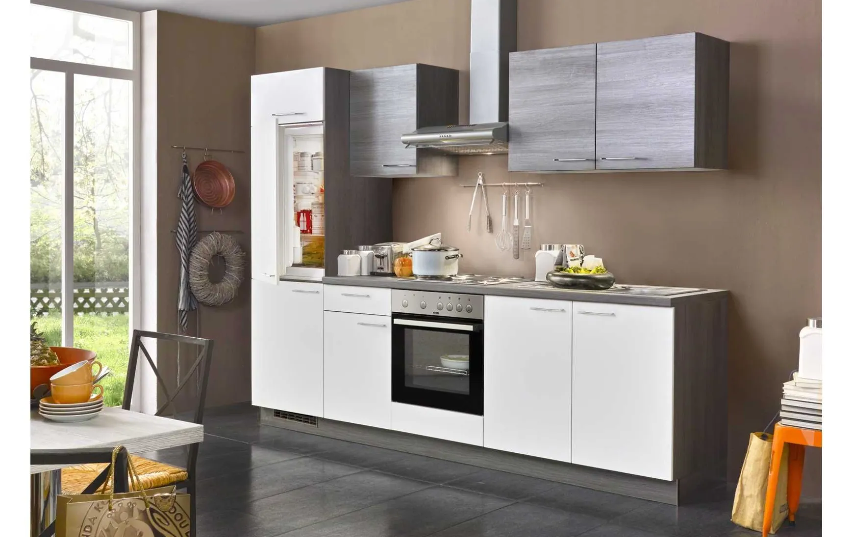 - Nicht im Preis enthalten: Abgebildete Dekoration, Geschirrspüler, Kohlefilter und Armatur