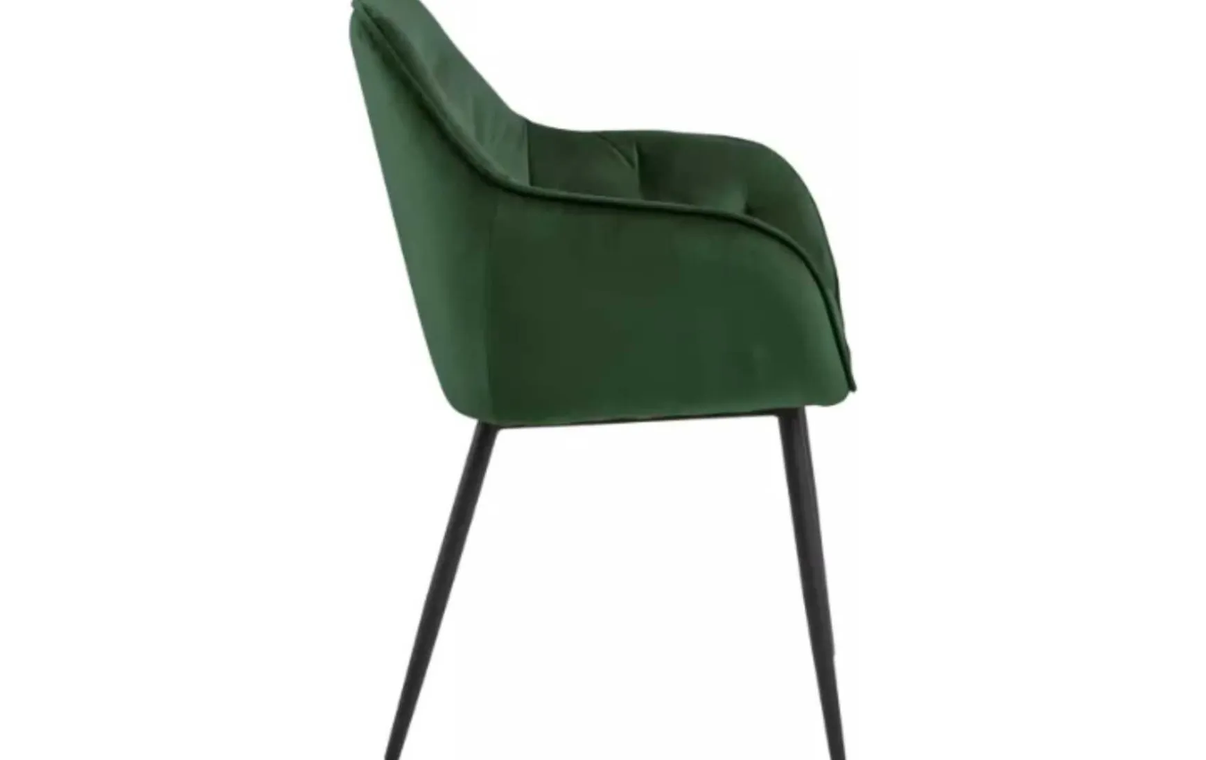 Dieser moderne Armlehnstuhl überzeugt durch sein stilvolles Design und hohen Sitzkomfort. Der hochwertige Stoffbezug in elegantem Waldgrün setzt einen frischen, zugleich edlen Akzent in Ihrem Wohn- oder Essbereich. Das stabile Gestell in rauem Schwarz matt bildet dazu einen markanten Kontrast und unterstreicht den modernen Charakter des Stuhls. Dank der integrierten Armlehnen bietet der Stuhl zusätzlichen Komfort und lädt zum entspannten Verweilen ein – ideal für gesellige Runden oder gemütliche Stunden.