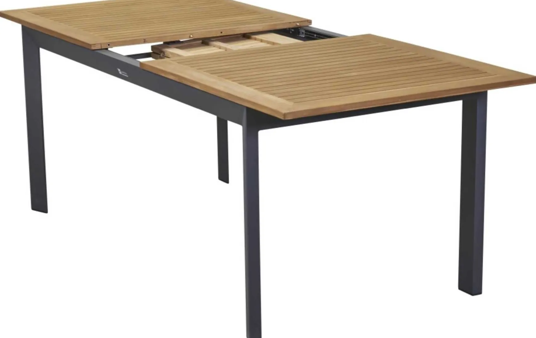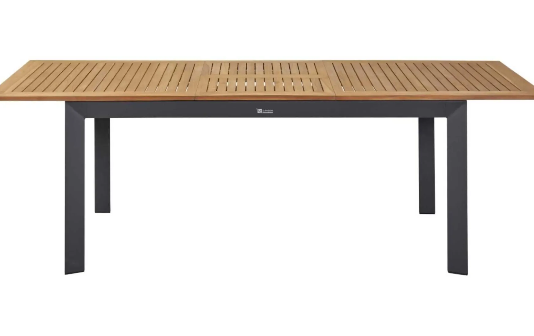 Der ausziehbare Tisch (ca. 180/240 x 90 x 75 cm) kombiniert eine natürliche Teakholzplatte mit einem anthrazitfarbenen Aluminiumgestell und bietet flexible Größe für stilvolle Outdoor-Momente.