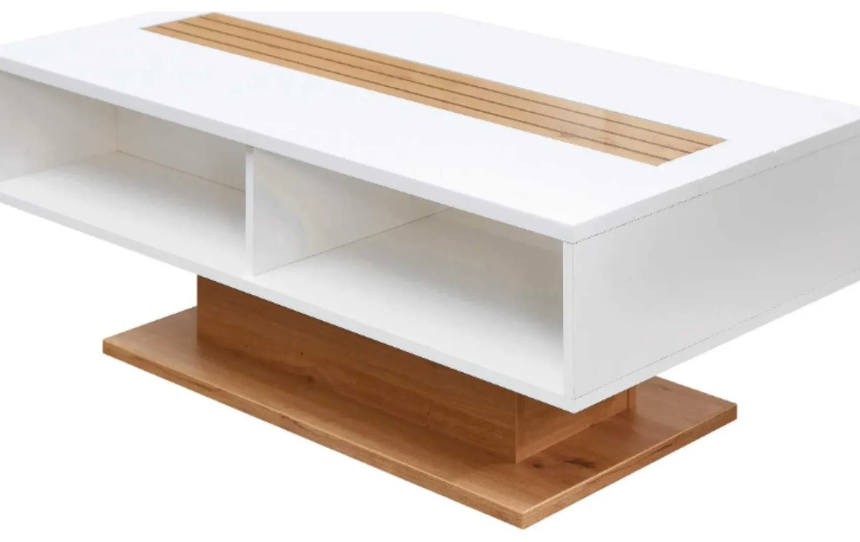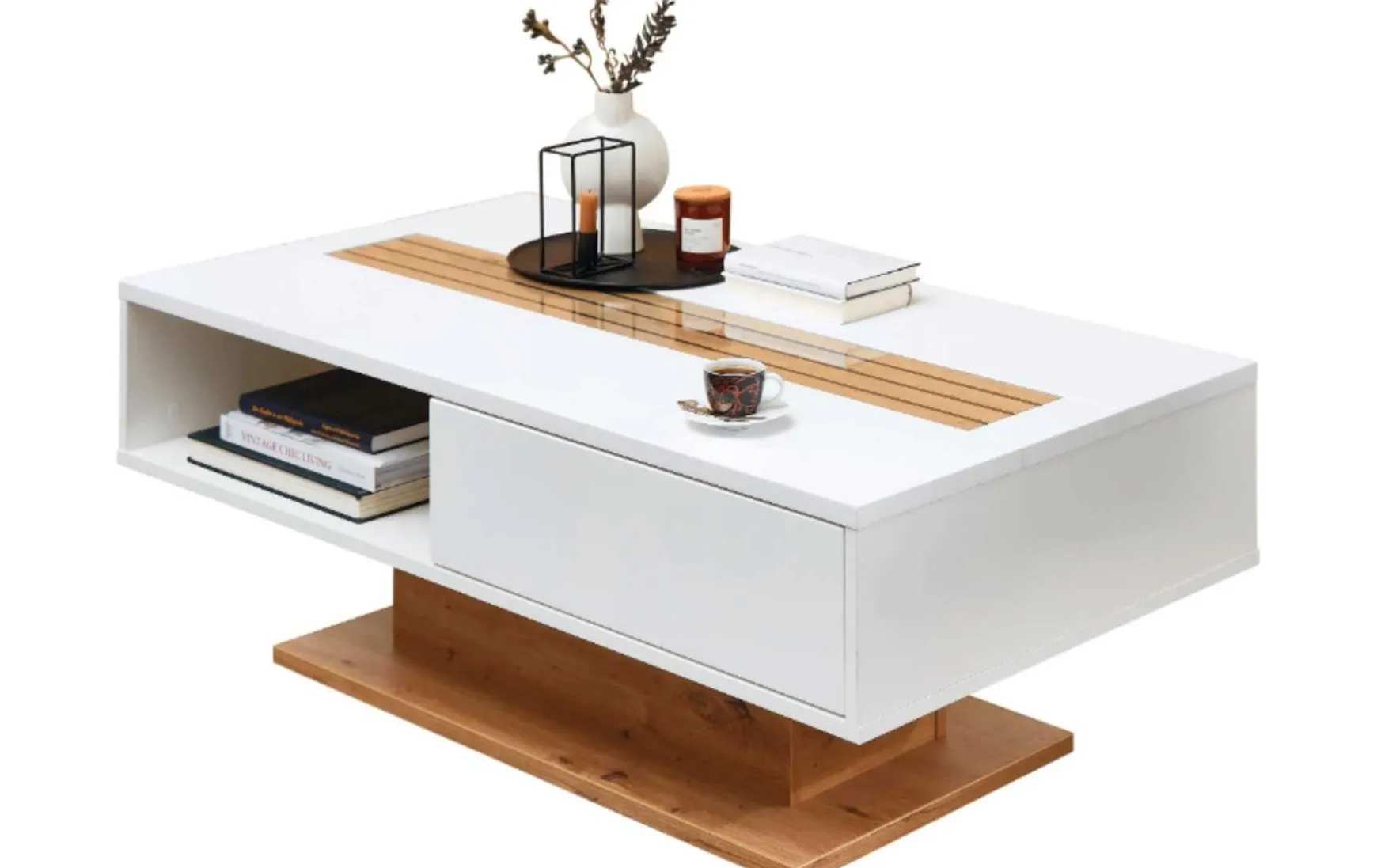 Lassen Sie sich von diesem modernen Couchtisch begeistern. Das Modell besticht durch seine schlichte Eleganz und bietet ausreichend Ablagefläche. Zudem bietet der Tisch einen Schubkasten und zwei offenen Fächern als zusätzlichen Stauraum.