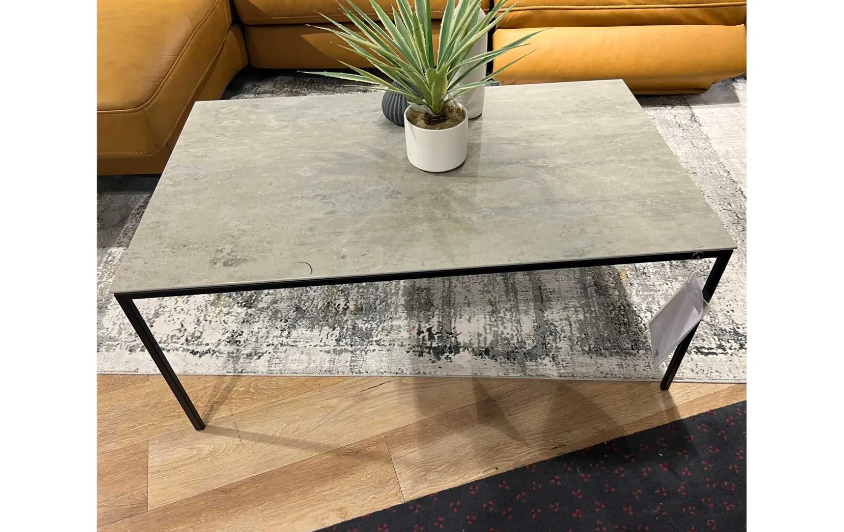 Edles Design und erstklassige Qualität sind die grundlegenden Eigenschaften mit mattschwarzem Metallgestell. Das filigrane Gestell aus mattschwarzem Metall harmoniert vorzüglich mit der hochwertigen Keramikplatte, deren betonfarbene Eleganz und robuste Verarbeitung begeistern. Dank der kratzfesten sowie gegen Hitze und UV-Licht beständigen Oberfläche beschränkt sich der Pflegeaufwand auf ein absolutes Minimum. Verschmutzungen wischen Sie schnell und leicht mit einem feuchten Tuch weg. Der Couchtisch ist ca. 100 x 35 x 60 cm (BxHxT) groß.