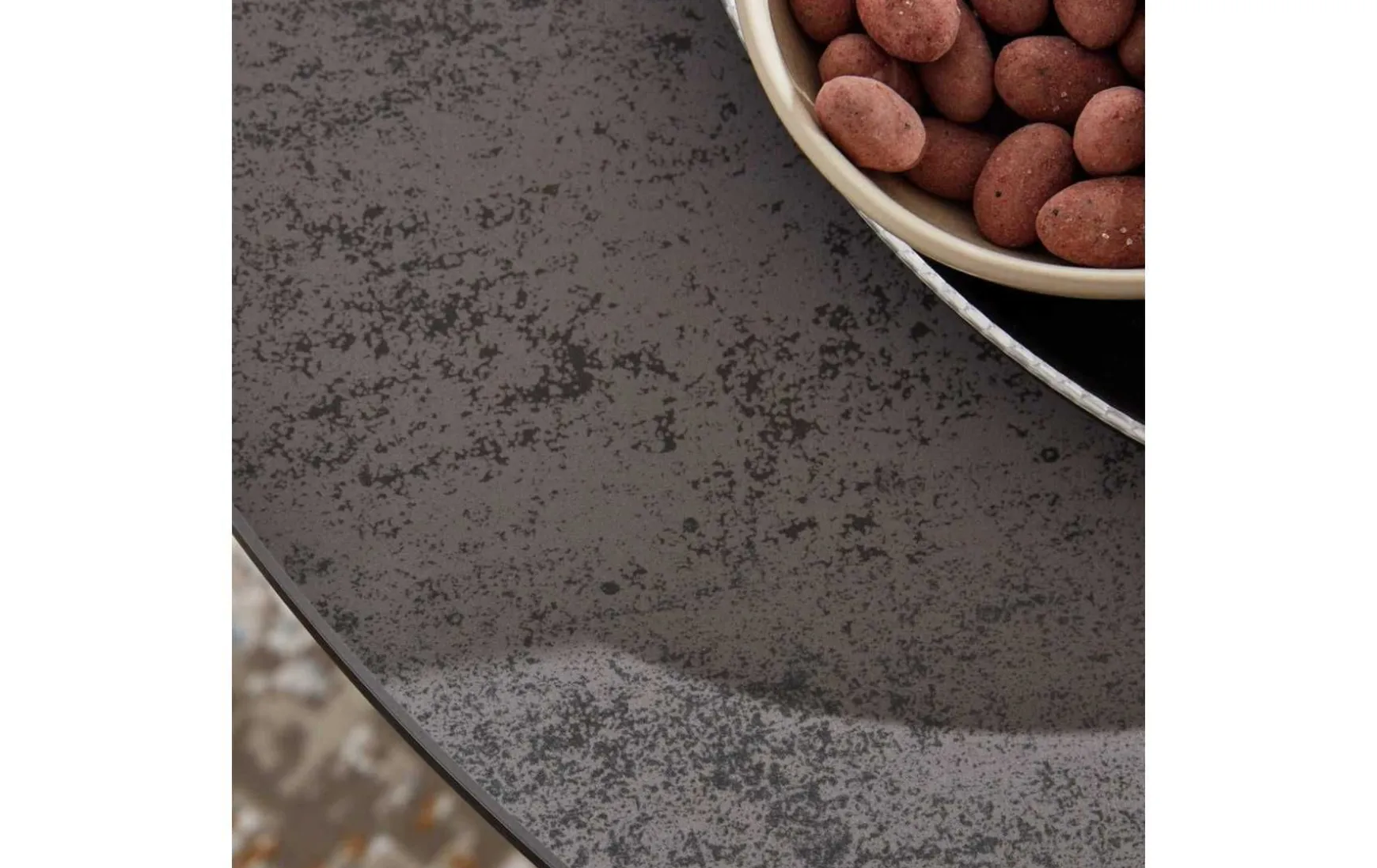 Mit der trendig titanfarbenen Keramiktischplatte und dem schwarz lackierten Stahlgestell verkörpert der Couchtisch moderne Eleganz. Dabei setzt die edel marmorierte Optik der Tischplatte ebenso einen attraktiven Akzent wie die spezielle Formgebung des Gestells. Der Durchmesser des runden Tisches beträgt ca. 75 cm, bei einer Höhe von ca. 45 cm. Funktionell begeistert die ausgeprägte Robustheit der Materialien. Dank der enormen Widerstandsfähigkeit des Stahls sowie der kratz- und schlagfesten Eigenschaften der 3 mm starken Keramik, die für besonders hohe Stabilität auf 6 mm Glas verklebt ist, bringt der Sofatisch beste Voraussetzungen mit, um Ihr Wohnzimmer jahrelang in exzellentem Zustand zu bereichern. Selbst hohe Temperaturschwankungen verträgt er.