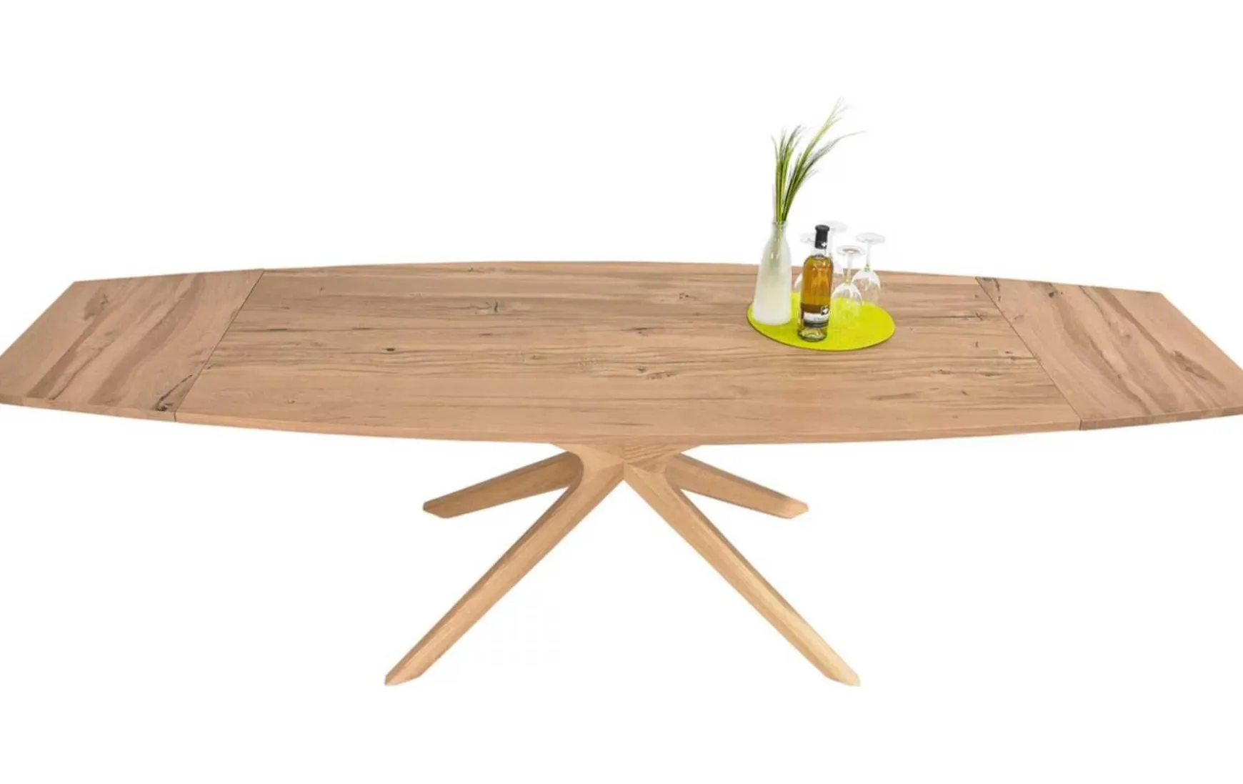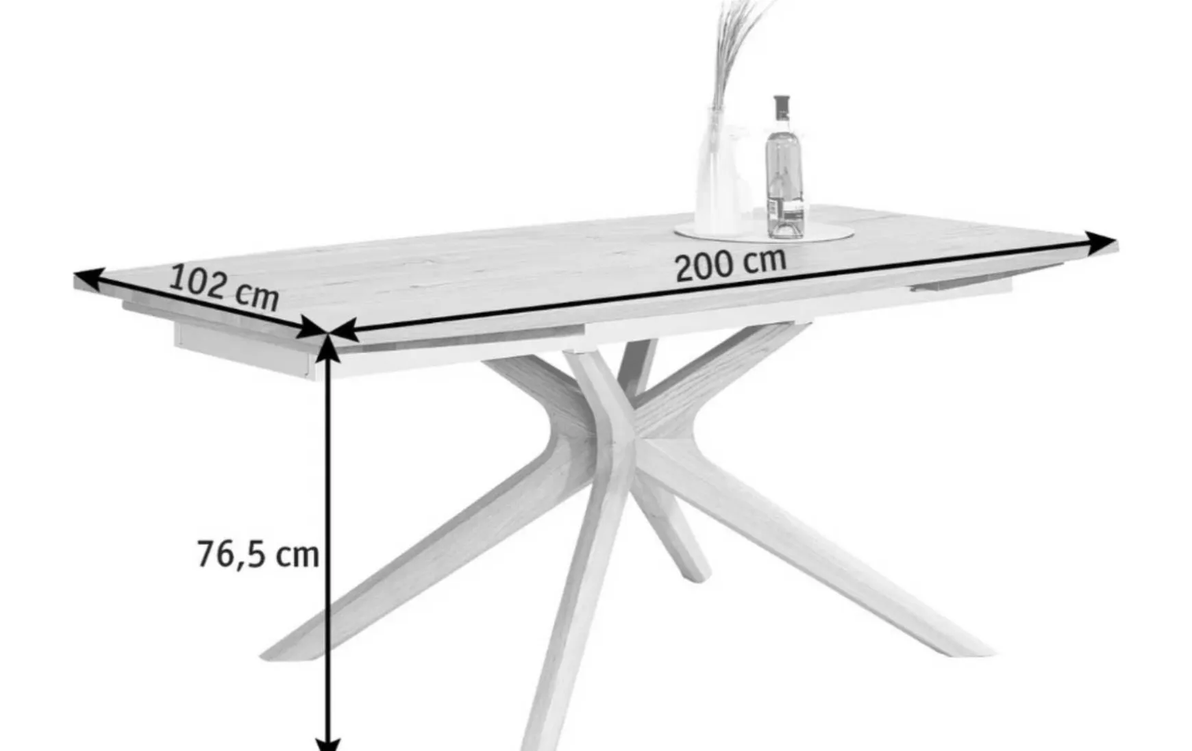 - Anmerkungen: Tischmaße: 200(300)x100 cm, Eiche Altholz Leder: Nappa Schwarz