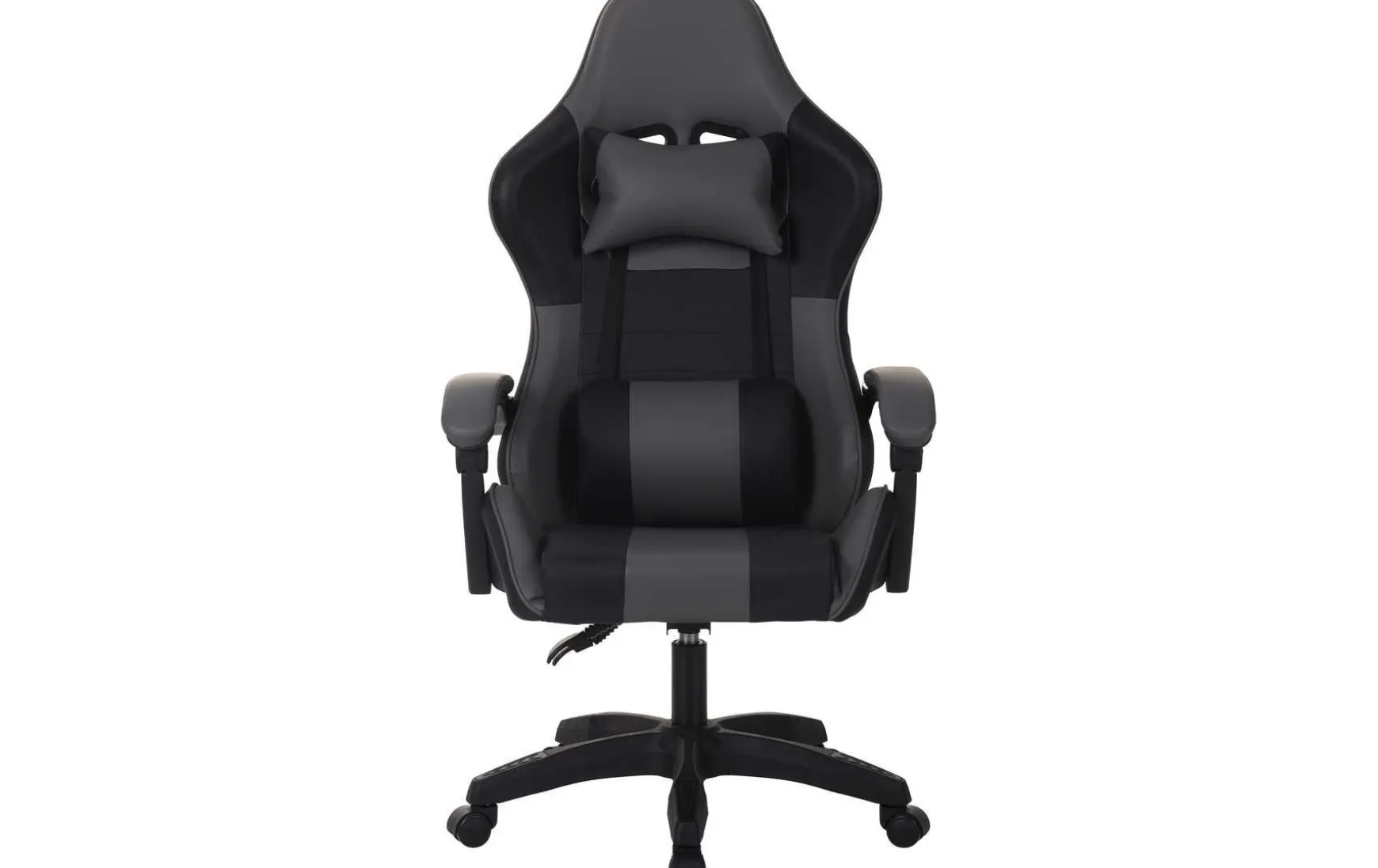 Der moderne Gamingstuhl in Grau-Schwarz bietet Komfort und Flexibilität für lange Gaming- oder Arbeitssessions. Die 360°-drehbare Sitzfläche sowie die höhenverstellbare Sitzhöhe sorgen für ergonomisches Sitzen, während die Kippfunktion zusätzliche Bewegungsfreiheit ermöglicht. Das Gestell aus Kunststoff auf 5 Teppichrollen garantiert Stabilität und Mobilität. Mit den Maßen ca. 70 × 120–130 × 65 cm (B × H × T), einem Gewicht von ca. 14,5 kg und einer Belastbarkeit von bis zu 110 kg ist der Stuhl robust und zugleich kompakt.