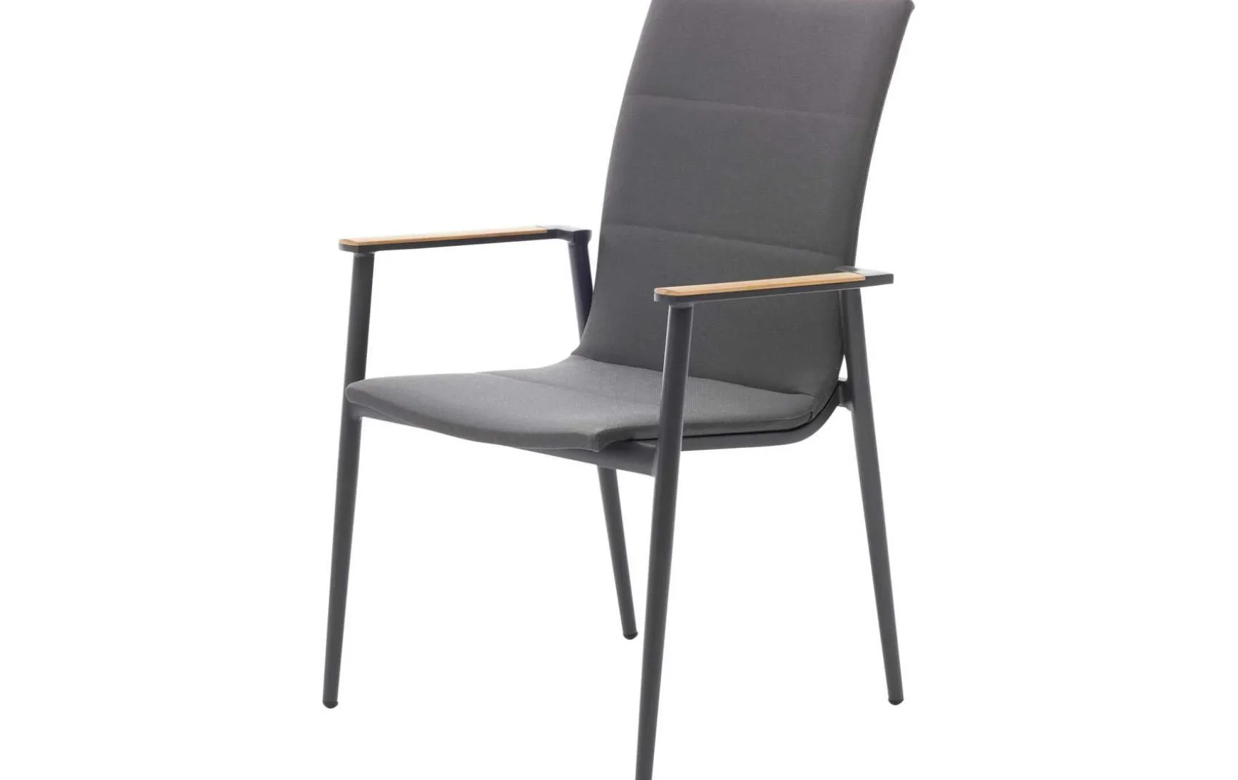 Dieser moderne Gartenstuhl vereint Komfort, Design und hochwertige Materialien in perfekter Harmonie. Die Sitz- und Rückenfläche aus Textilene in elegantem Grau sorgt für angenehmen Sitzkomfort und ist gleichzeitig pflegeleicht sowie strapazierfähig. Die stilvollen Armlehnen aus Teakholz setzen einen natürlichen Akzent und verleihen dem Stuhl eine warme, hochwertige Optik. Das stabile Gestell aus pulverbeschichtetem Aluminium in Anthrazit überzeugt durch seine Langlebigkeit, Korrosionsbeständigkeit und sein modernes Erscheinungsbild. Dadurch ist der Gartenstuhl ideal für Terrasse, Balkon oder Garten geeignet und fügt sich harmonisch in verschiedene Outdoor-Konzepte ein.