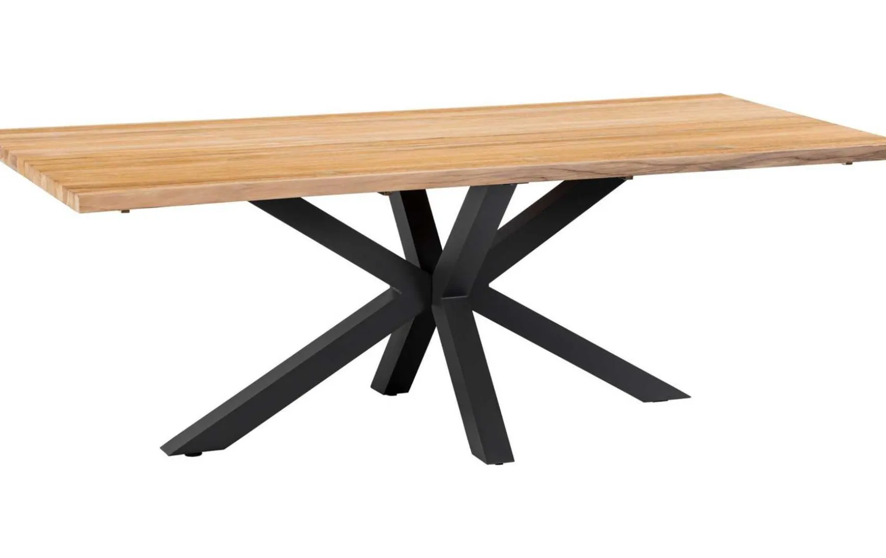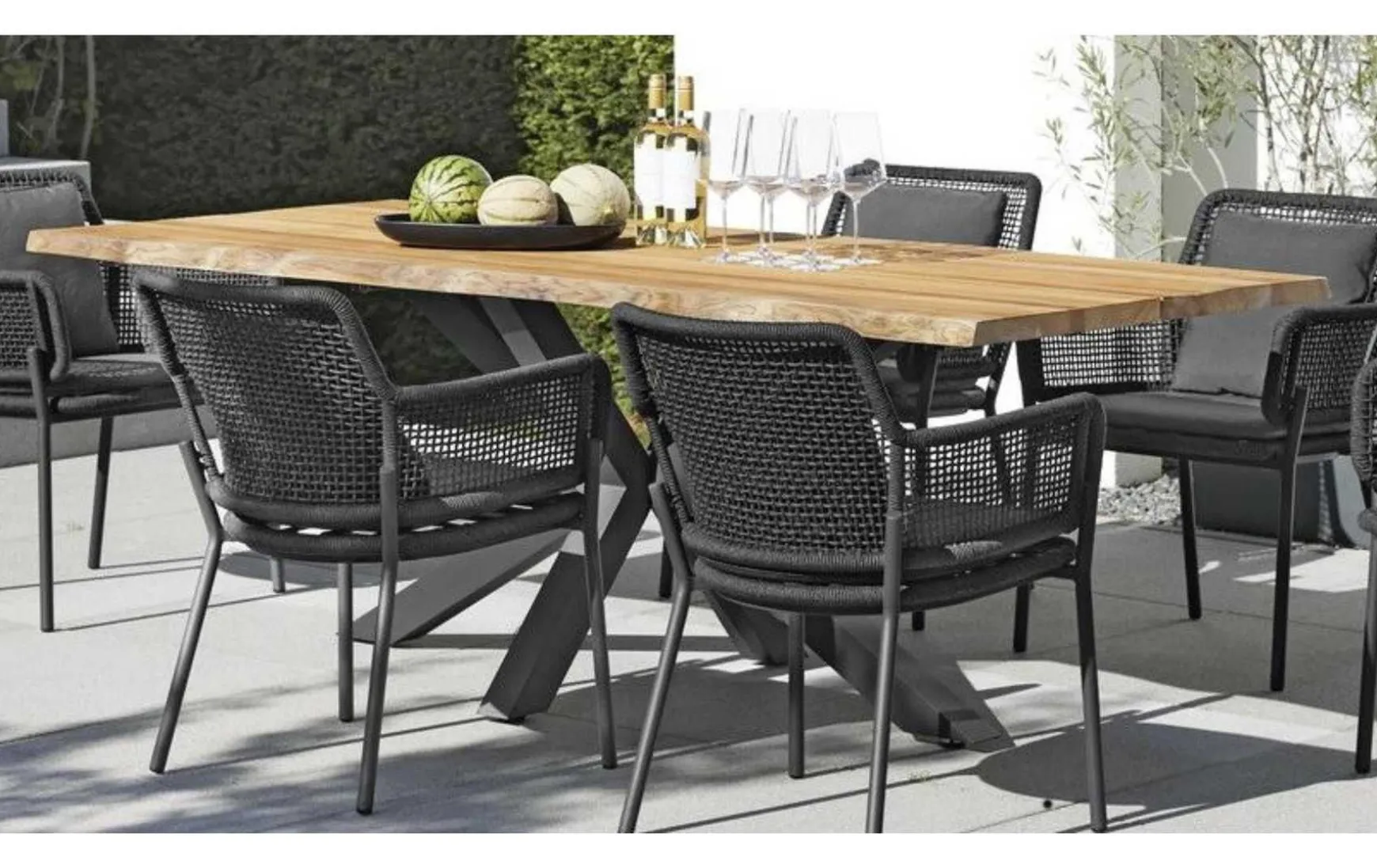 Dieser moderne Gartentisch wird zum stilvollen Mittelpunkt Ihres Outdoor-Bereichs. Die großzügige Tischplatte mit natürlicher Baumkante aus gebürstetem Teakholz verleiht jedem Tisch einen einzigartigen Charakter und unterstreicht die hochwertige, natürliche Optik. Durch die gebürstete Oberfläche kommt die individuelle Maserung des Holzes besonders schön zur Geltung. Das stabile Gestell aus pulverbeschichtetem Aluminium in Anthrazit bildet einen eleganten Kontrast zur warmen Holzfarbe und sorgt gleichzeitig für hohe Stabilität sowie Wetterbeständigkeit. Die große Tischplatte bietet ausreichend Platz für Familie und Gäste – ideal für gesellige Abende auf der Terrasse oder im Garten.