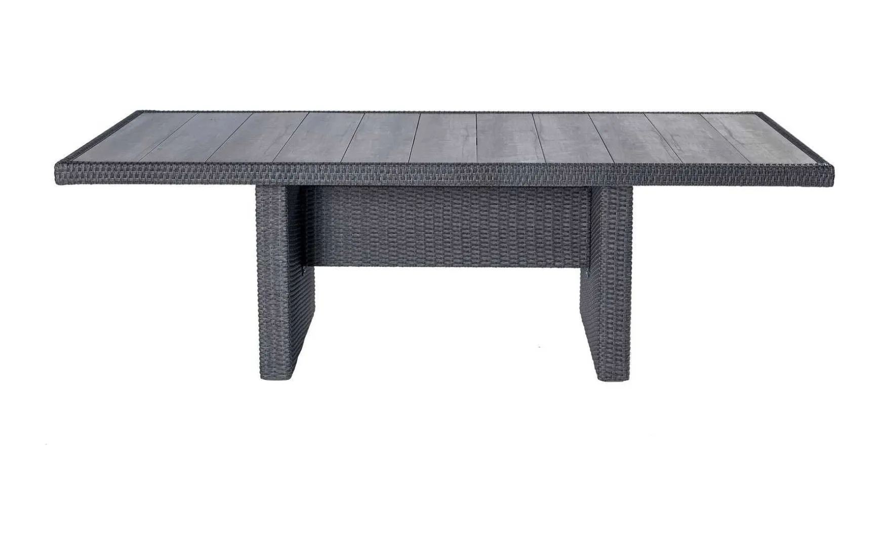 Dieser moderne Gartentisch überzeugt durch elegantes Design und hochwertige Materialien – ideal für Terrasse oder Garten. Die Tischplatte aus grauer Keramik ist besonders pflegeleicht, robust und witterungsbeständig, während das Wangentisch-Gestell in Anthrazit aus Aluminium und Rattan Stabilität und Langlebigkeit garantiert. Mit den Maßen von ca. 212 × 100 × 75 cm (L × B × H) bietet der rechteckige Tisch ausreichend Platz für Familie, Freunde und gesellige Runden im Freien. Der Tisch wird vormontiert geliefert, sodass er direkt einsatzbereit ist. Bitte beachten Sie, dass Dekorationsartikel nicht im Lieferumfang enthalten sind.