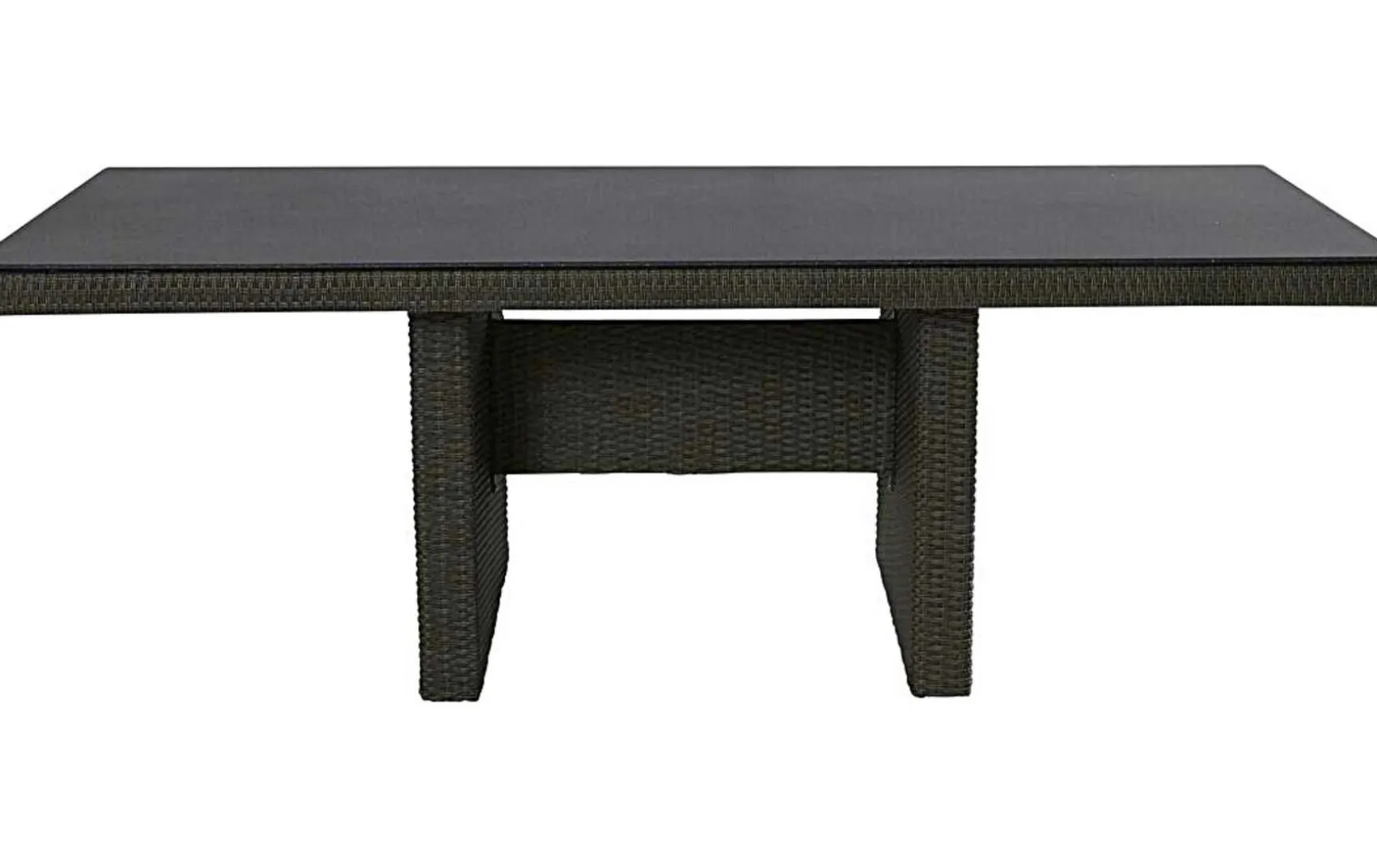Das Gestell aus Aluminium sorgt für Stabilität und Langlebigkeit, während das Polyrattangeflecht in Grau-Mix dem Tisch eine stilvolle, hochwertige Ausstrahlung verleiht. Mit den Maßen von ca. 220 × 100 × 75 cm (L × B × H) bietet der Tisch ausreichend Platz für Familie und Freunde.