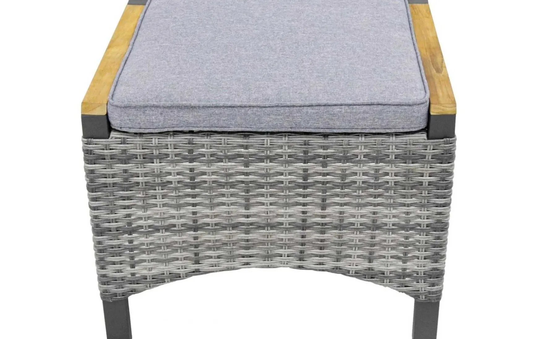 Dieser moderne Dining-Hocker vereint stilvolles Design, Komfort und hochwertige Materialien – perfekt für Essbereiche, Lounges oder Outdoor-Bereiche. Die halbrunde Form in Doppelhalbrund sorgt für eine elegante, moderne Optik und harmoniert mit verschiedenen Einrichtungsstilen. Der Hocker ist aus Geflecht aus Rattan gefertigt und besitzt einen Holzton in Teak, was ihm eine natürliche, warme Ausstrahlung verleiht. Für zusätzlichen Komfort ist ein passendes Kissen inklusive, sodass längeres Sitzen angenehm und bequem ist.