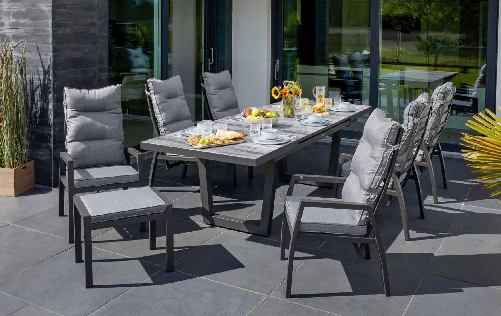 Dieser moderne Hocker vereint stilvolles Design, Komfort und langlebige Materialien und ist ideal für Terrasse, Balkon oder Garten geeignet. Das stabile Gestell aus pulverbeschichtetem Aluminium in Anthrazit sorgt für Robustheit, Wetterbeständigkeit und moderne Eleganz. Für zusätzlichen Sitzkomfort ist ein passendes Sitzkissen inklusive, sodass längeres Sitzen angenehm und bequem ist. Der Hocker lässt sich flexibel als Sitzgelegenheit oder Beistelltisch einsetzen und fügt sich harmonisch in jede Outdoor- oder Indoor-Einrichtung ein.