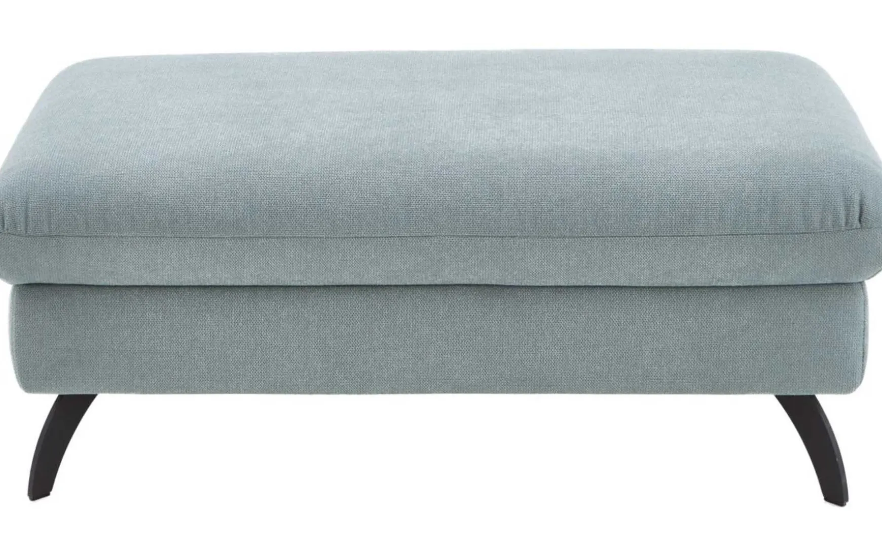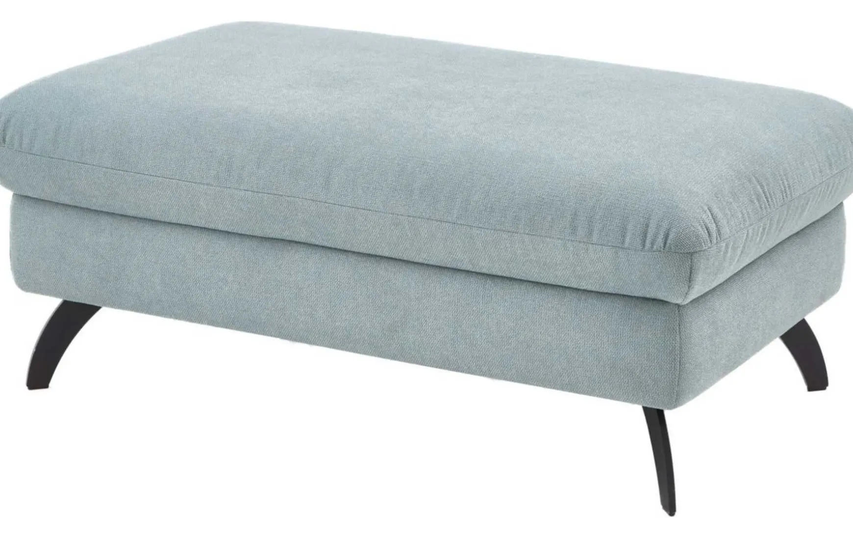Der trendige Polsterhocker ist mit einem salbeifarbenen Strukturstoff bezogen und steht auf mattschwarzen Metallfüßen. Seine Maße betragen ca. 112 x 47 x 67 cm (B/LxHxT). Bequmen Sitzkomfort gewährleistet die legere, softe PUR-Schaumpolsterung auf einer Wellenunterfederung.