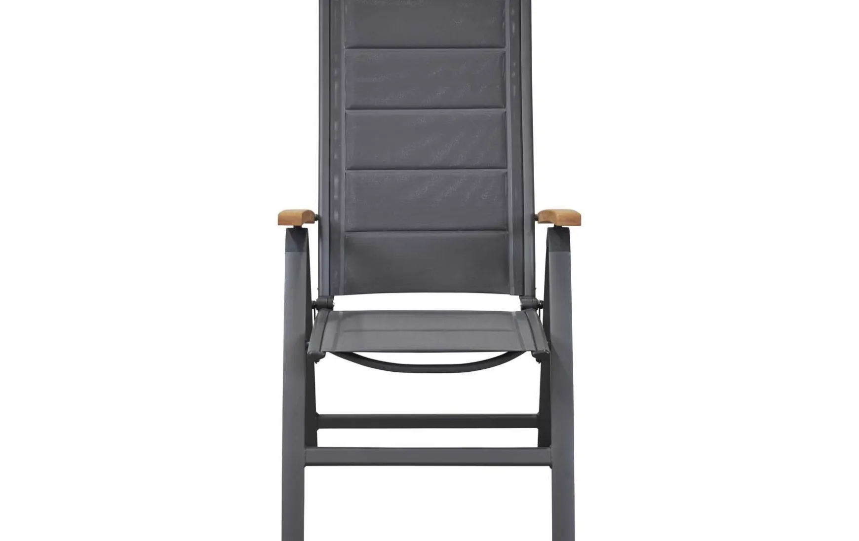 Das Gestell besteht aus pflegeleichtem und wetterfestem Aluminium in der Farbe Anthrazit. Ein weiterer Pluspunkt des Klappsessels ist die Bespannung mit Textilene. Dieser Bezugsstoff überzeugt durch eine hohe Robustheit gegenüber Hitze und Frost aus und ist leicht zu reinigen. Dank der Verwendung von hochwertien Materialien ist der Klappsessel überaus robust und hält einer Belastung von 120 kg hervorragend stand.