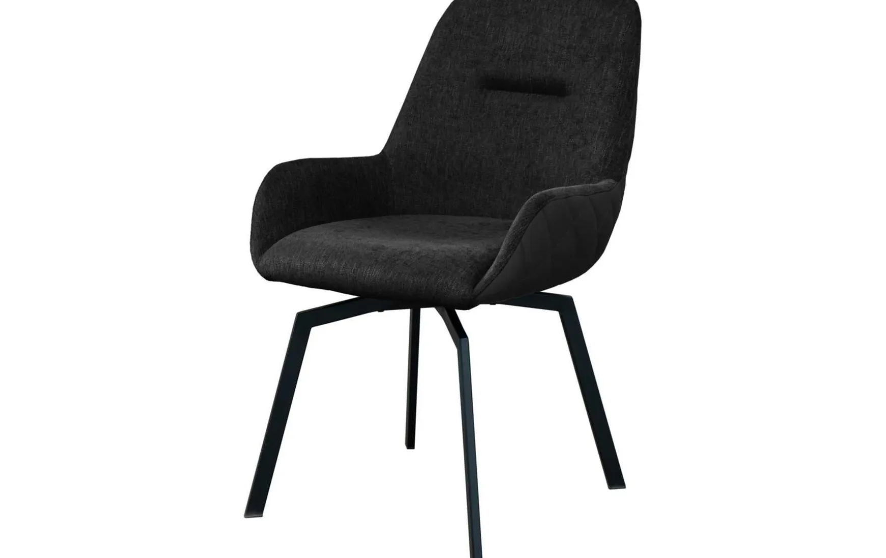 Essen schmeckt natürlich immer besser, wenn man bequem sitzt. Durch die Drehfunktion ist das angenehme Sitzen ohne den Stuhl zu verschieben möglich. Gleichzeitig ist der Stuhl unübersehbar durch sein ausgefallenes Rautenmuster, auf der Außenseite vom Stuhl.Dieser drehbare Polsterstuhl besteht aus einem 4-Fuß-Gestell aus Metall in schwarz Seine Rückenlehne-, Armlehne- und Sitzfläche ist mit einem Stoffbezug überzogen.