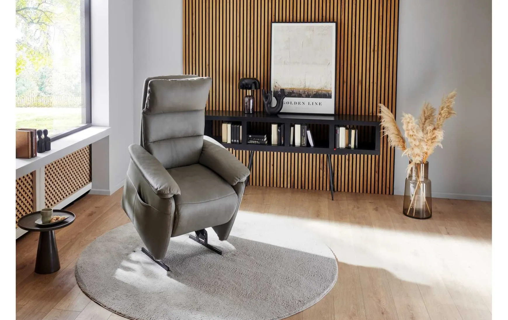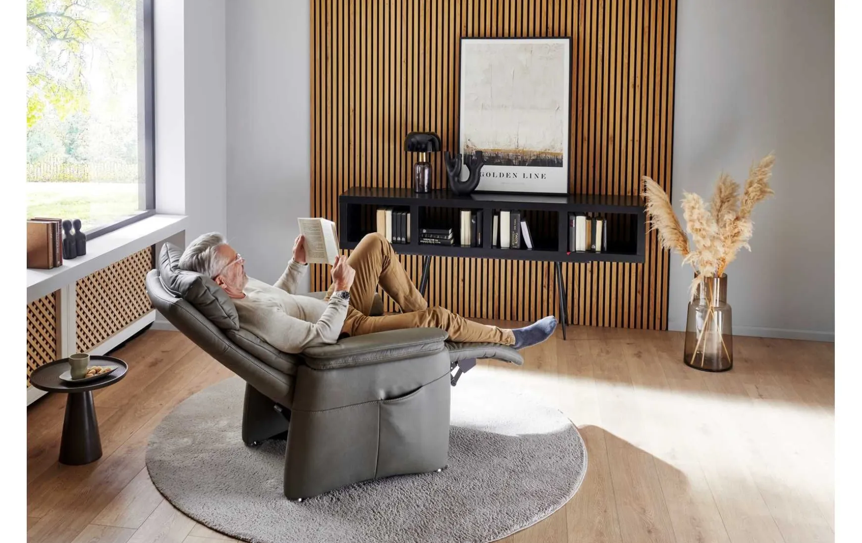 Mit der eleganten Lederfarbe Evita smoke und einer polierten Aluminium-Basis vereint dieser Relaxsessel Stil und Funktionalität in perfekter Harmonie. Die ergonomische M2-Form sorgt für optimalen Sitzkomfort, während die Schaumpolsterung ein Gefühl von Luxus vermittelt. Besonders hervorzuheben ist (optional) die 3-motorische Herz-Waage-Funktion mit integrierter Aufstehhilfe, die in Kombination mit der motorischen Kopfteil-Verstellung und dem Maxi-Rücken für eine individuell anpassbare Entspannung sorgt. Mit einer Sitzhöhe von 49 cm und einer Sitztiefe von 53 cm bietet dieser Sessel nicht nur Komfort, sondern auch eine maßgeschneiderte Passform für jeden Nutzer.