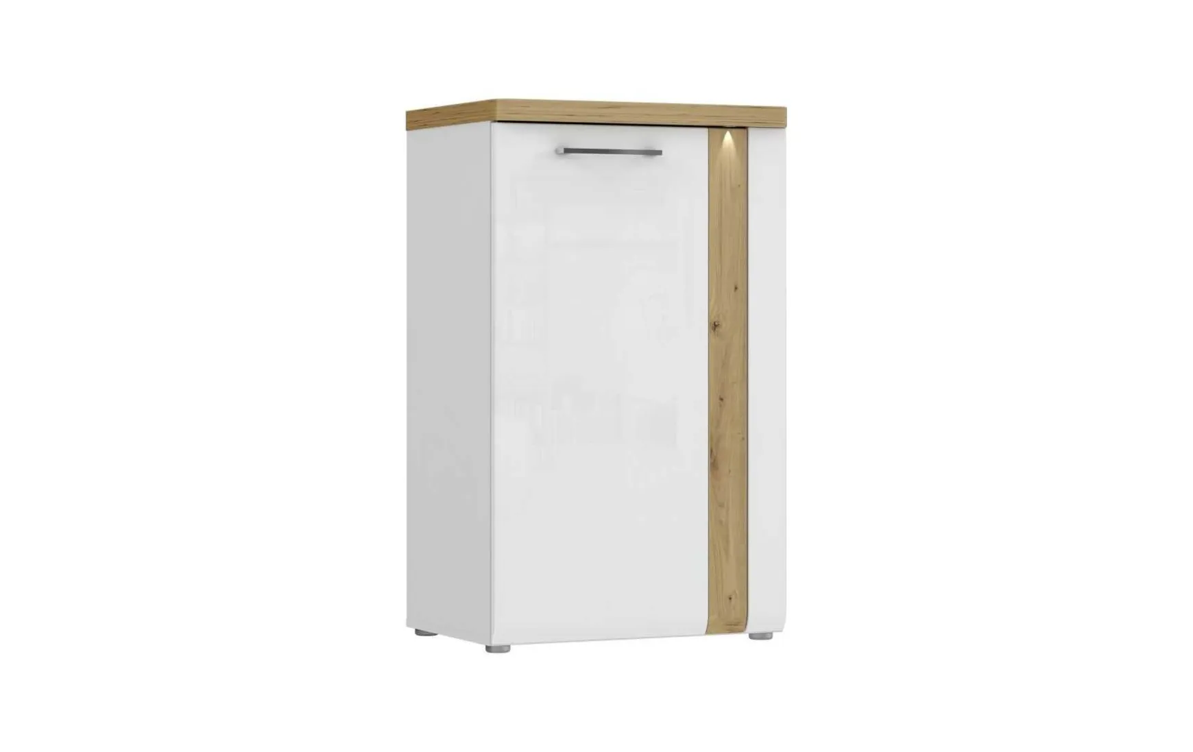 Dieser moderne Schuhschrank in Weiß-Glanz und Artisan-Eiche kombiniert stilvolles Design mit praktischer Funktionalität für Flur oder Eingangsbereich. Die harmonische Kombination aus hochglänzendem Weiß und warmem Artisan-Eiche-Dekor verleiht dem Schrank eine elegante, zeitgemäße Optik und fügt sich perfekt in moderne Wohnkonzepte ein. Mit den Maßen von ca. 60,3 × 100 × 43,4 cm (B/H/T) bietet der Schuhschrank ausreichend Stauraum für Schuhe, während die eine Tür für eine ordentliche und übersichtliche Aufbewahrung sorgt. Gefertigt aus robustem Holzwerkstoff, ist der Schrank langlebig und stabil. Die pflegeleichte Oberfläche lässt sich einfach trocken abwischen. Im Preis ist bereits das Leuchtmittel enthalten, das für zusätzliche Funktionalität sorgt. Der Schuhschrank wird zerlegt geliefert und ist leicht zu montieren.