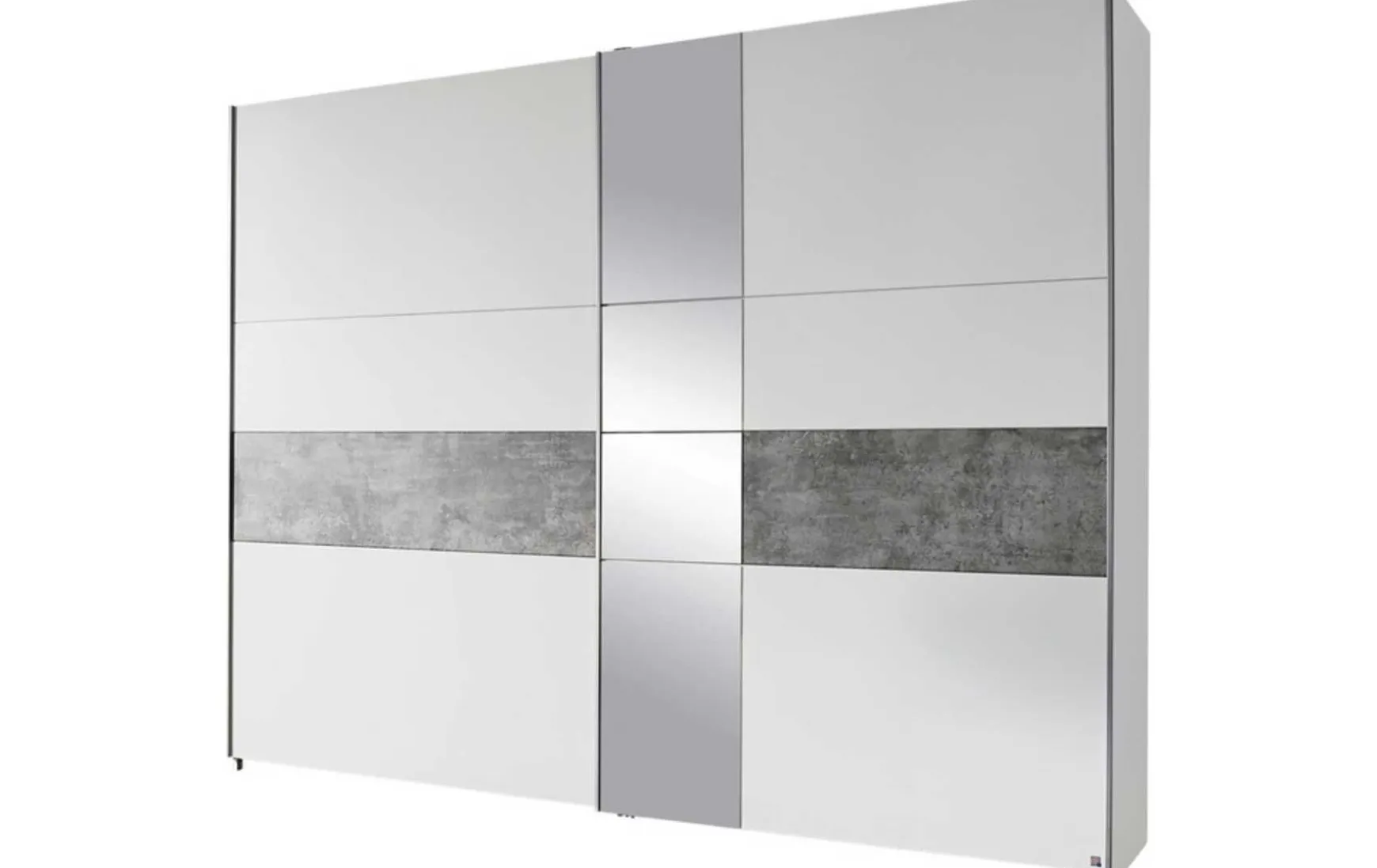 Der moderne 2-türige Schwebetürenschrank in Weiß/Stone Grey mit Teilspiegelfront überzeugt durch ein elegantes Design und großzügigen Stauraum. Mit seinen Maßen von ca. 261 × 59 × 210 cm (Breite / Tiefe / Höhe) bietet der Schrank viel Platz für Kleidung und Accessoires und fügt sich harmonisch in moderne Schlafzimmer ein. Die Kombination aus alpinweißem Korpus, Stone-Grey-Fronten und integriertem Spiegel sorgt für eine helle, zeitlose Optik und lässt den Raum größer wirken. Im Inneren ist der Schrank mit 3 Kleiderstangen und 3 Einlegeböden ausgestattet, während eine Türendämpfung sowie passende Inneneinteilungen gegen Mehrpreis erhältlich sind. Gefertigt aus robustem Holzwerkstoff mit pflegeleichter Dekoroberfläche, lässt sich der Schrank einfach mit einem trockenen Staubtuch reinigen. Mit einem Gewicht von ca. 166,44 kg und einem Stauraumvolumen von ca. 349 l bietet dieser Schwebetürenschrank eine gelungene Kombination aus Funktionalität, Design und Qualität.
