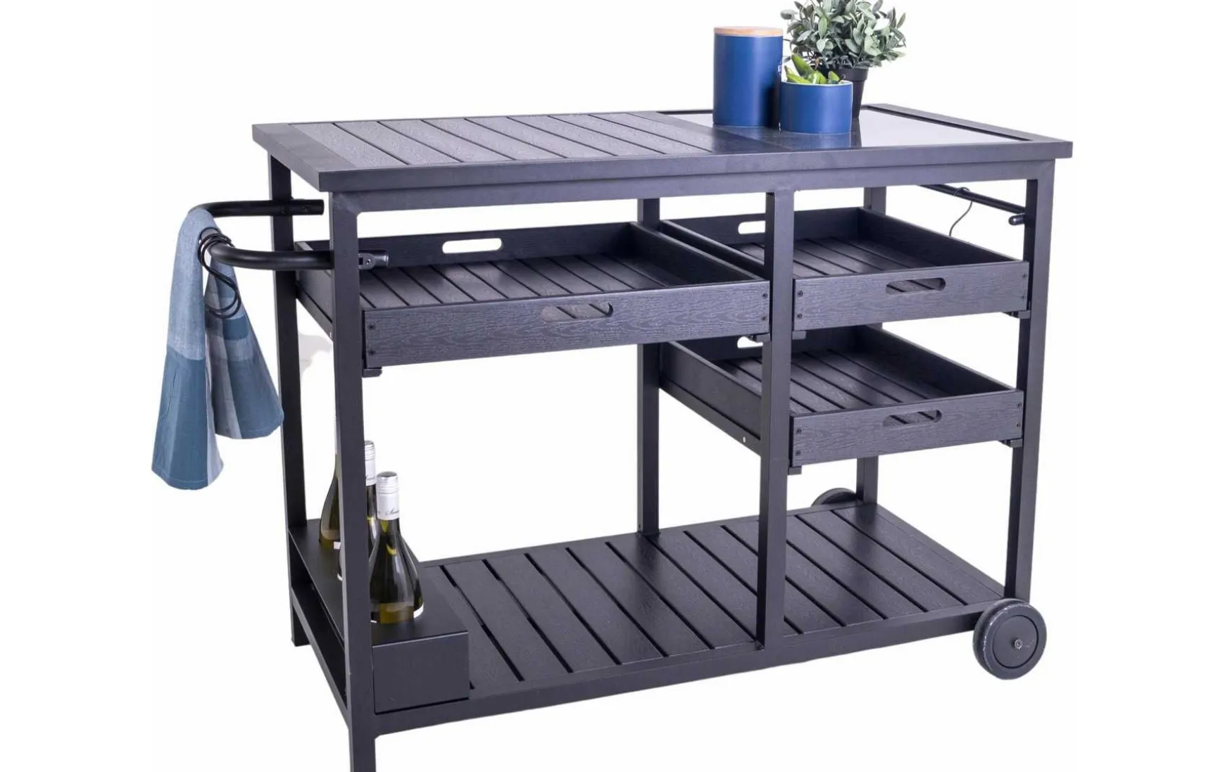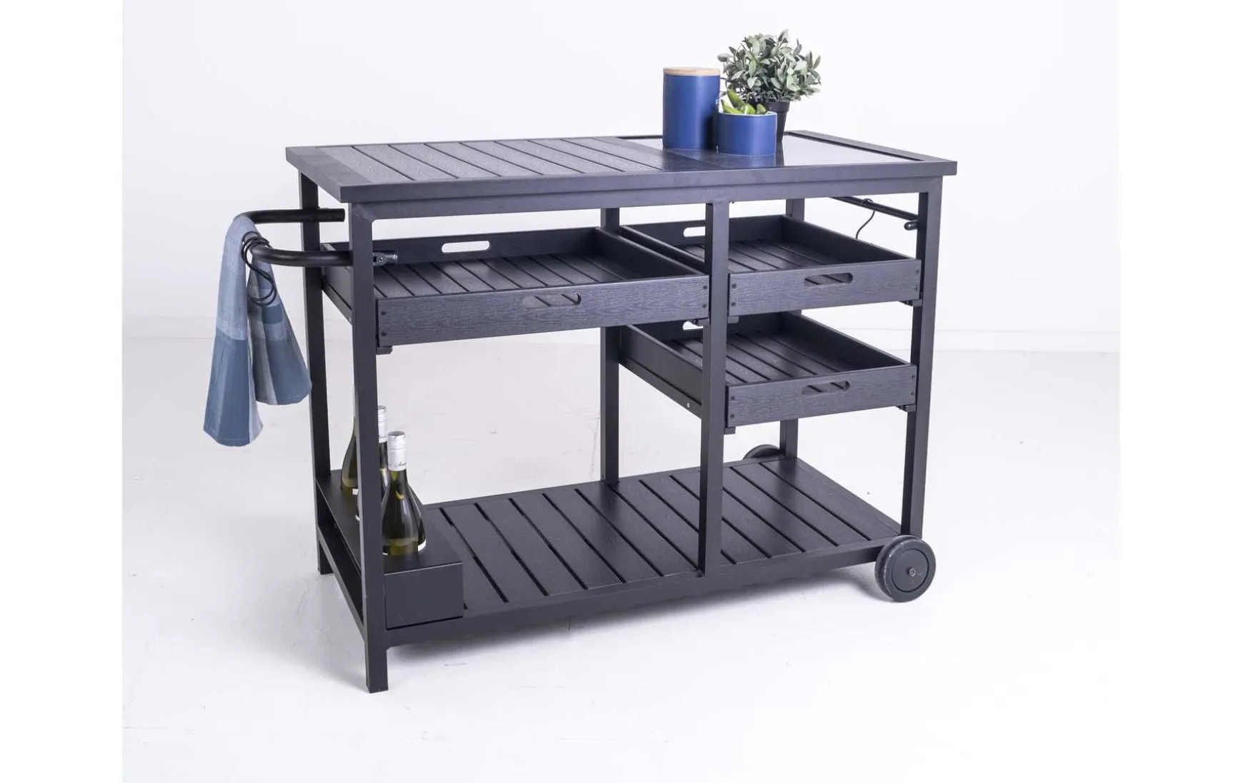 Dieser Servierwagen bietet genug Platz zum Verstauen all Ihrer Dinge. Die praktischen Rollen erlauben Ihnen den Servierwagen je nach Belieben zu verschieben. So kann er während des Essens als Servierwagen dienen und anschliessend an seinen Platz zurück geschoben werden.